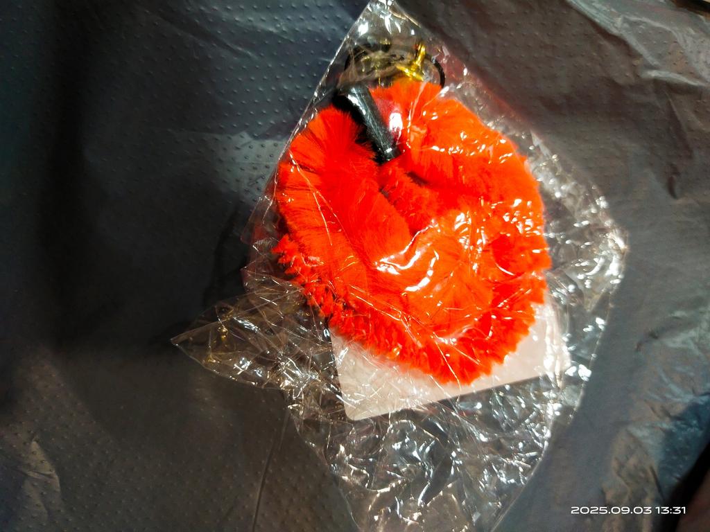 A little funny creature with a bell!!πThe cat carried it in its teeth, then we hung it on a stick - it hunts when we play!!!!πππ