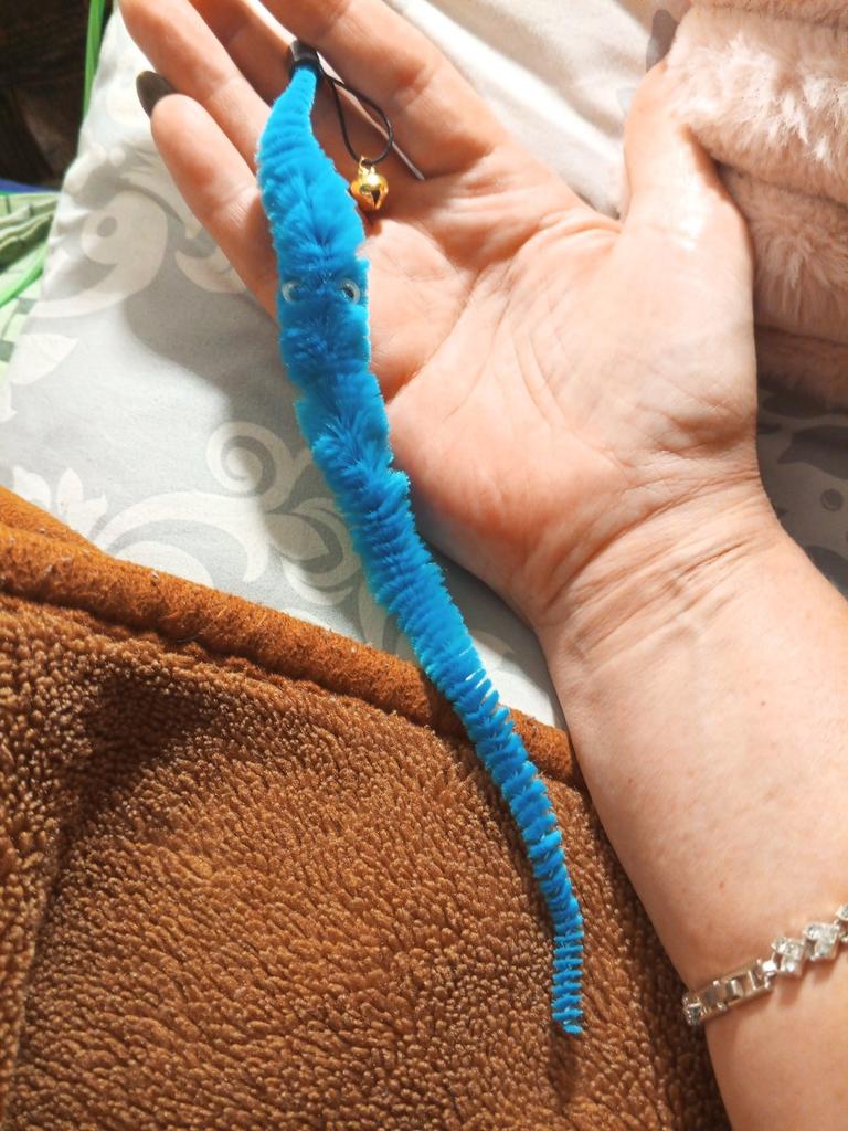 Wonderful caterpillar! We tied it to a stick with a string, the cats play with pleasure! Thank you!)))