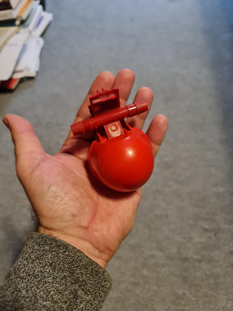 One of the drinker's fasteners didn't fit. But the whole thing did.