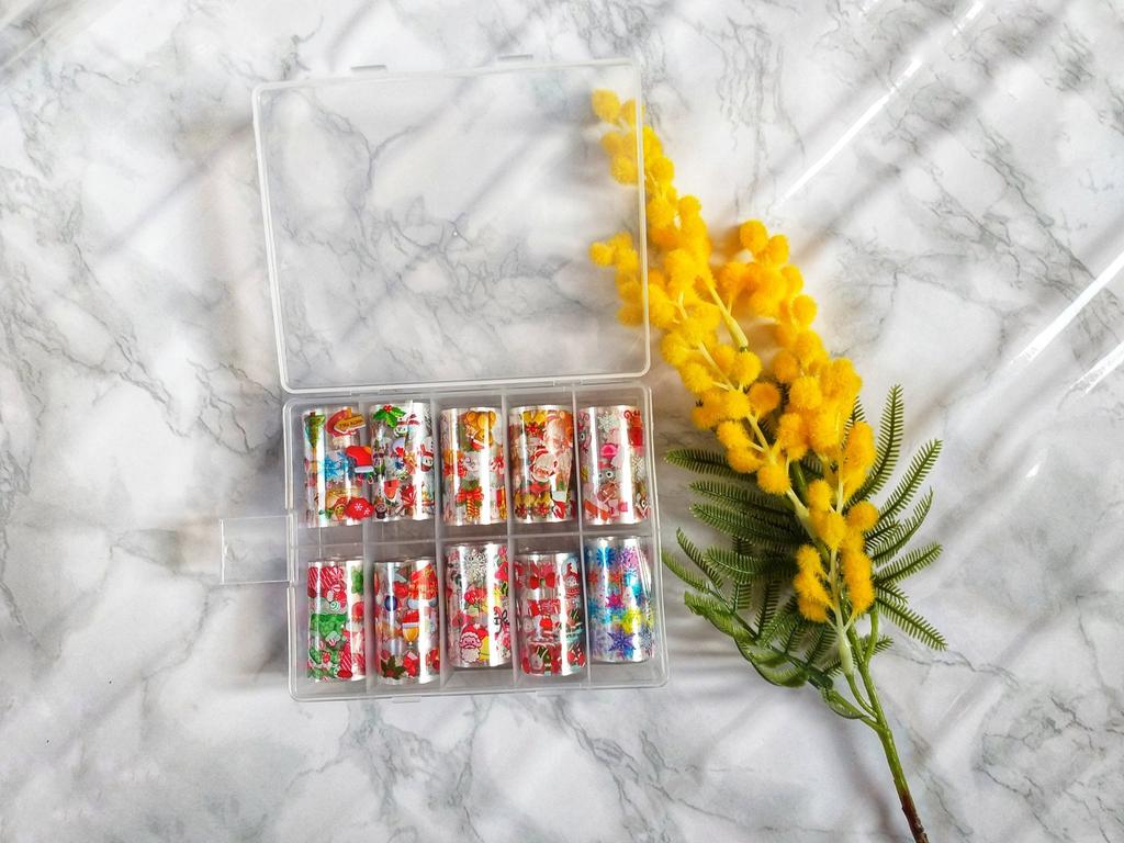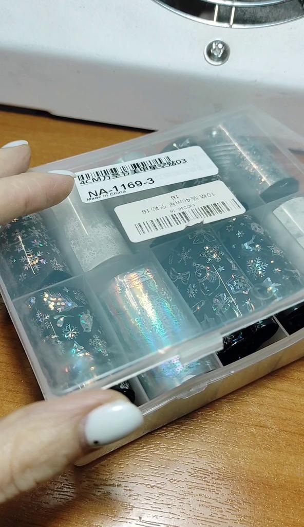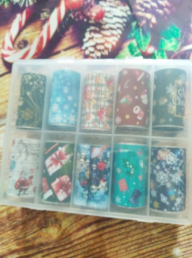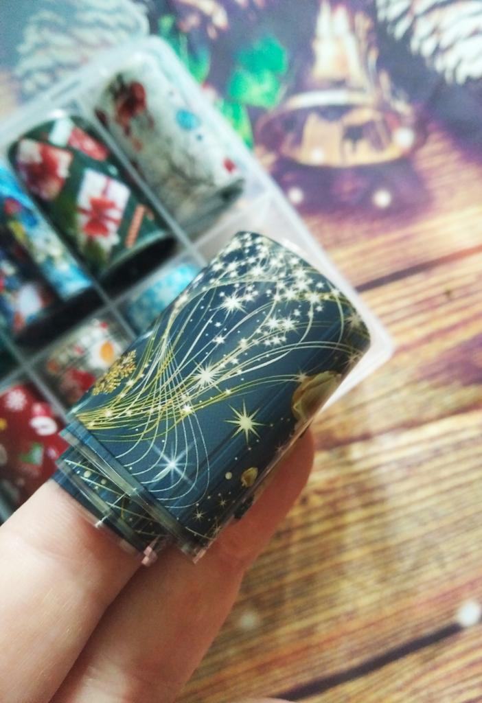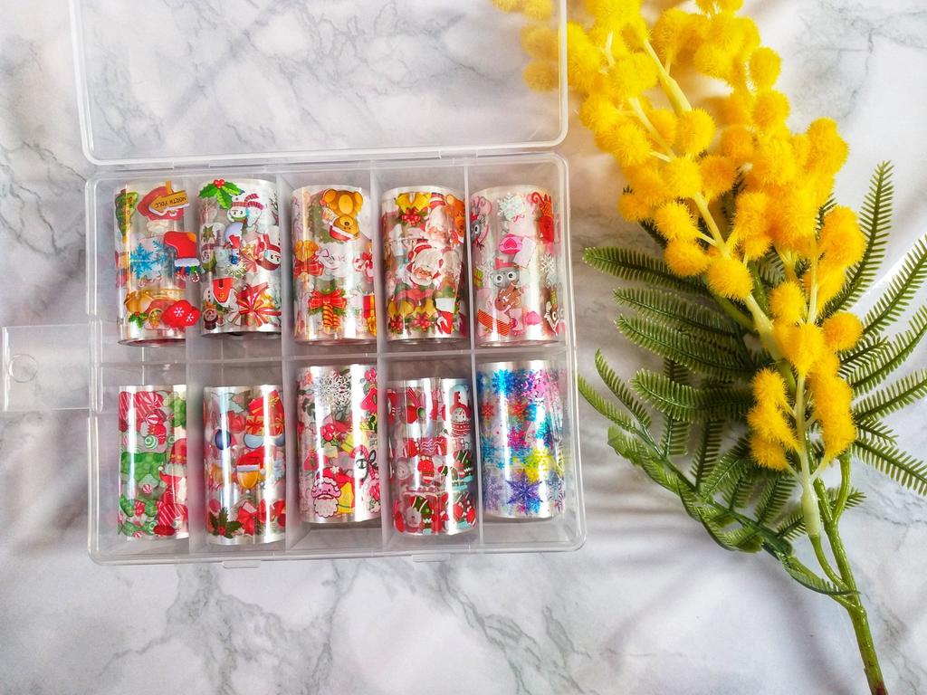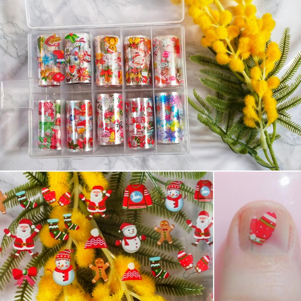 These nail foils are perfect for Christmas! š āļøšš There are 10 rolls in 1 package. Super cheap for the large amount you get! Easy to use too. Just apply base coat first and cure. Then press the foil on your nails and finish it with top coat. Cure and you're done! š I advice to buy. They are also available in different designs, for example snowflakes or Halloween theme.