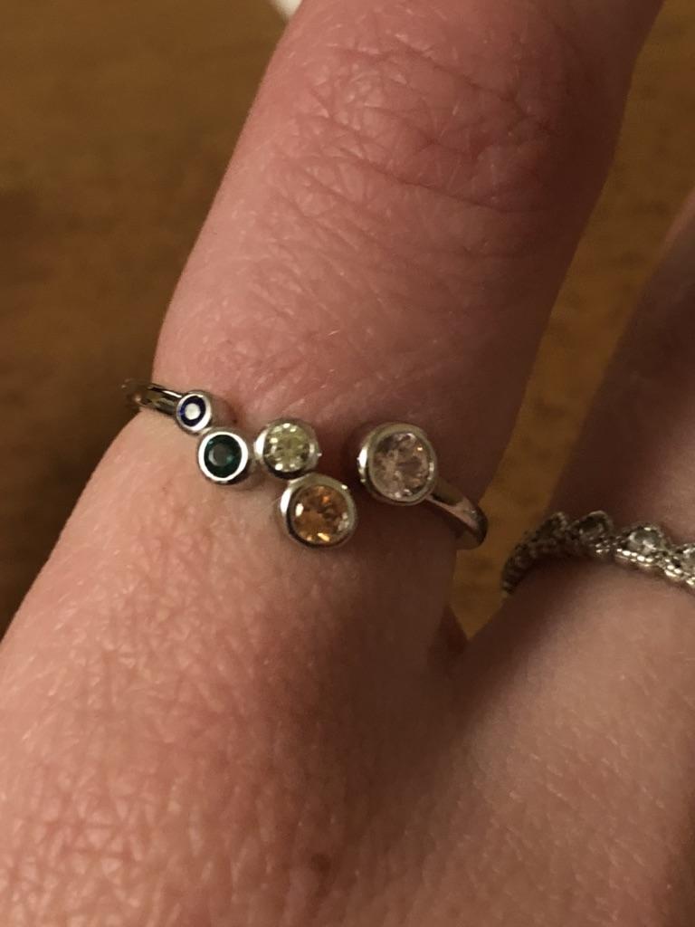 This pretty ring is very very sweet and it is also stamped and a ring with colorful stones that is a bit different, thank you very much again