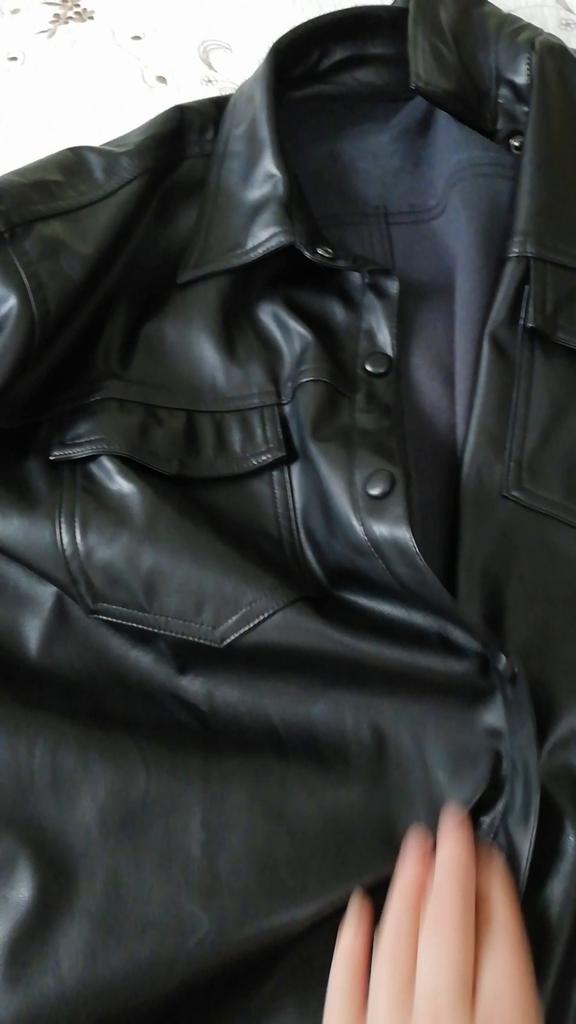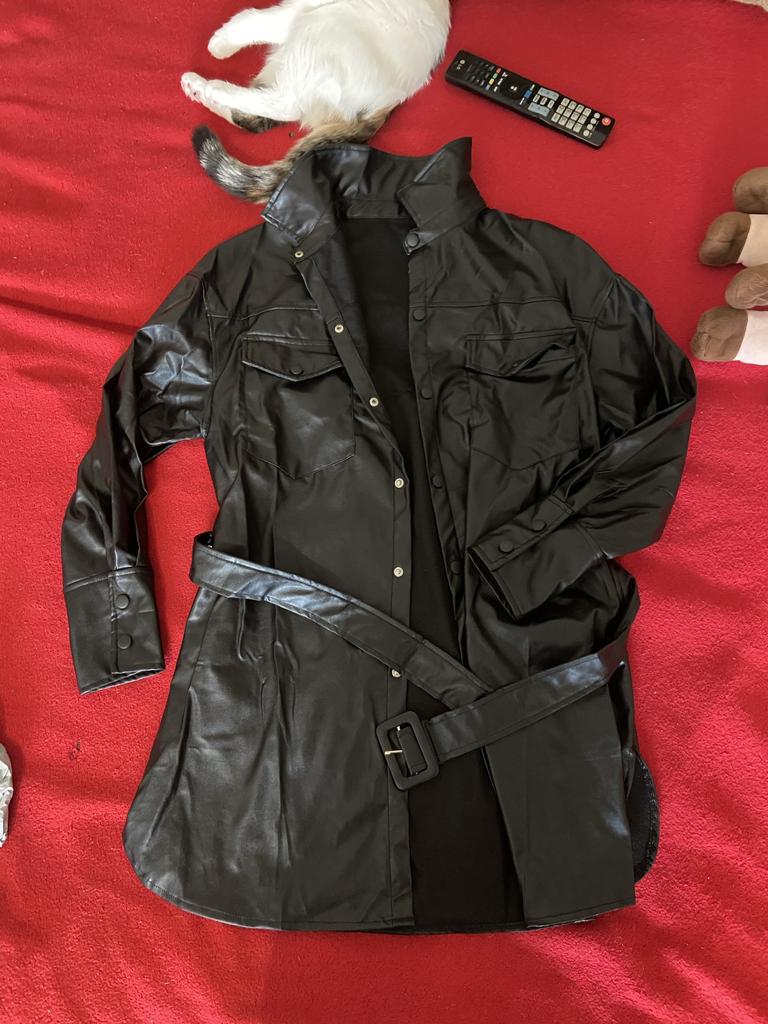 Fine leatherette jacket in black, shirt-type collar and belt. It is quite long, long enough to cover the butt. It is not too warm, it would be better for spring or autumn or as an interior piece in winter. The size is perfect for me, I like it a lot and it is very stylish, it combines with various looks and also has many possibilities, open, closed, with the belt tied or not tied, 3/4 sleeves, etc. I am very happy with the purchase and with the seller, it is as seen in the photos and it arrived in Barcelona in about two weeks. I leave you photos and a video so you can see it better. Follow me for more full reviews!