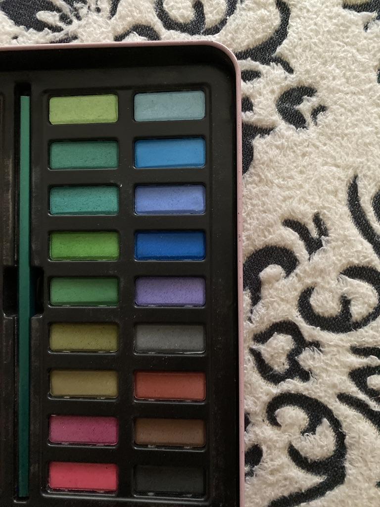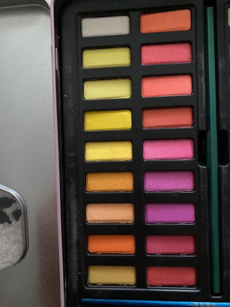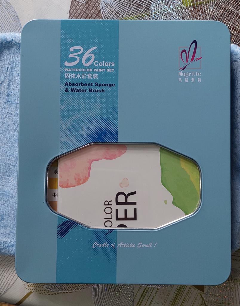 Such a beautiful creative set. I took it as a gift. Wonderful colors. Package. Box. I don’t know yet how it will all be on paper. By the way, it is also present in the set, like brushes