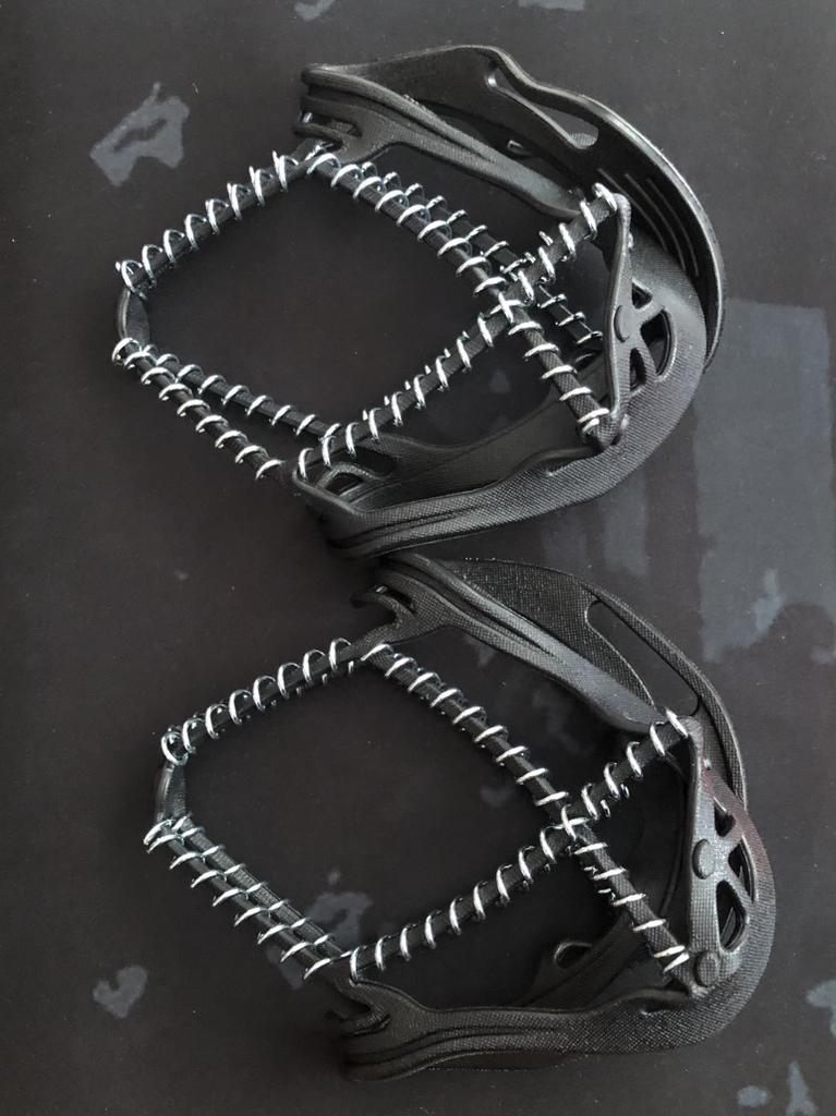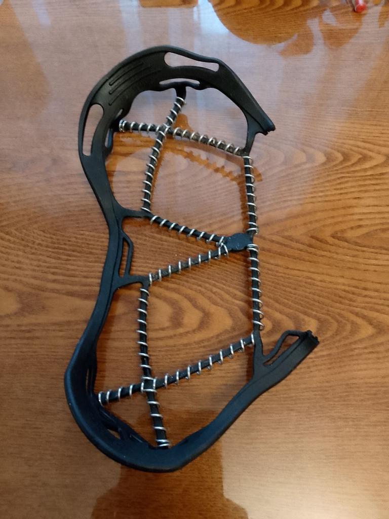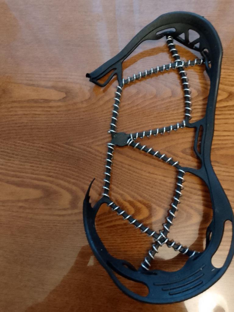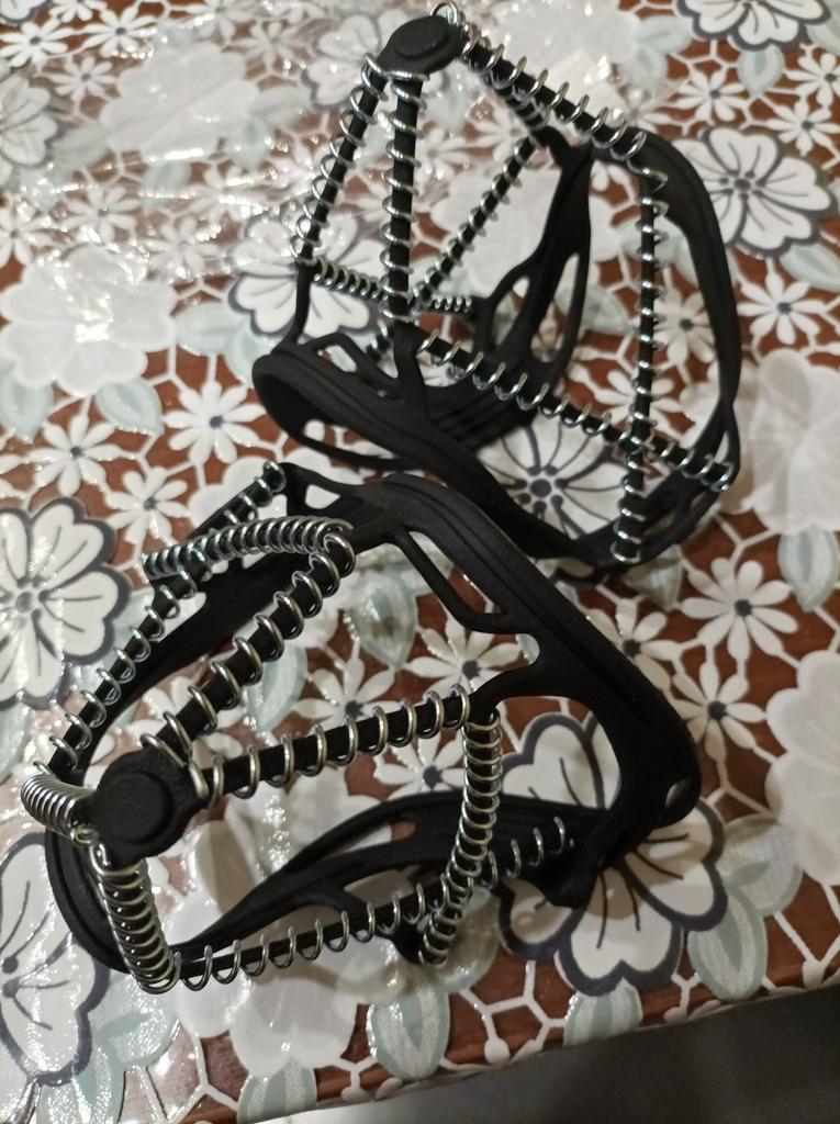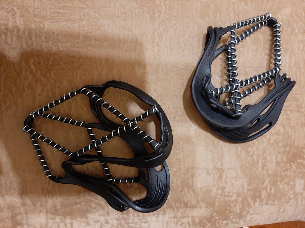 Necessary accessories for safe walking on slippery terrain. The skeleton is made of rubber, so it adapts to very different shoe sizes, but on a large number 44 and above, force is needed to be stretched enough. And they must be mounted on clean shoes, separately. It will not work to easily mount it while walking down the street. It remains to be seen how much anti-slip effect it has and how well it stays fixed while walking.