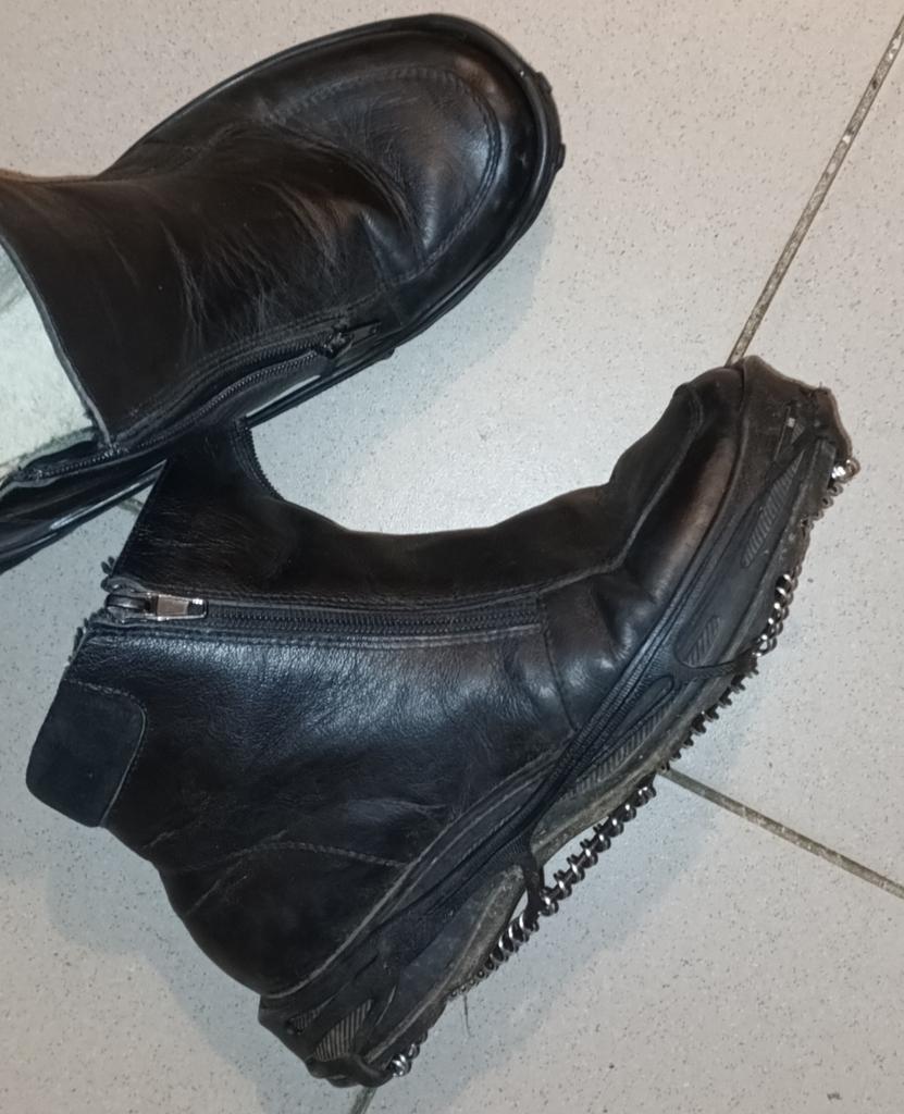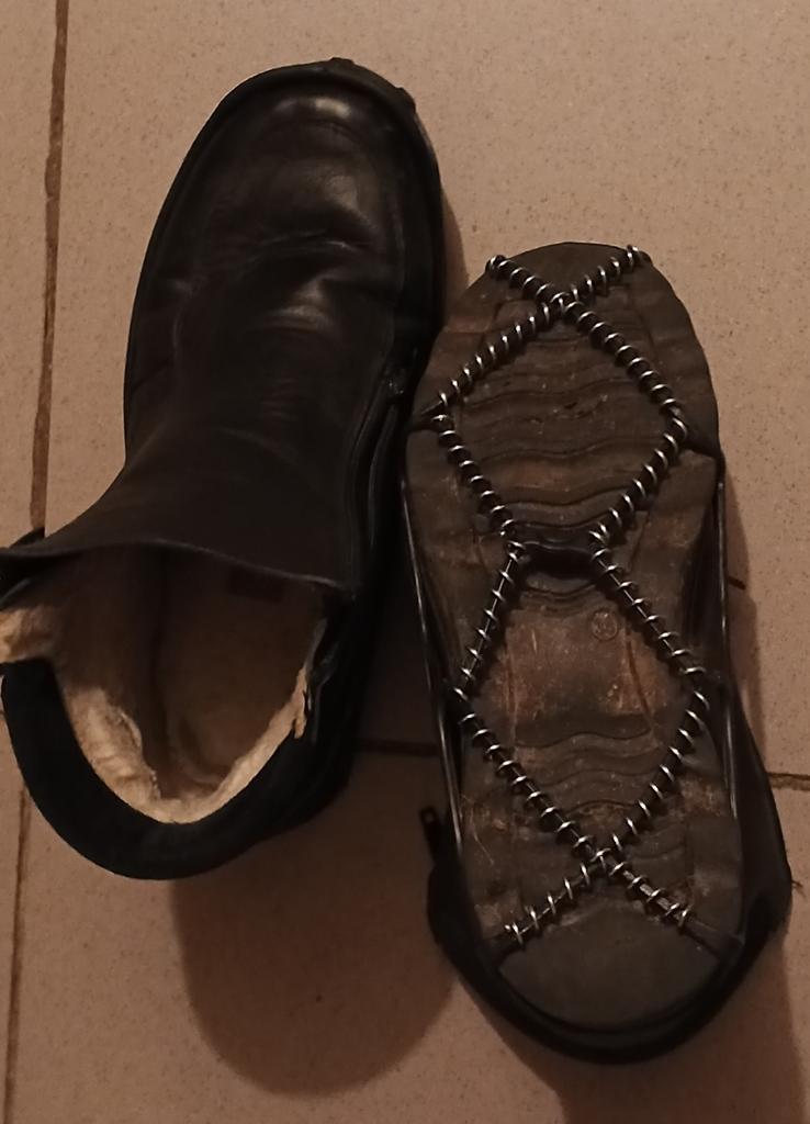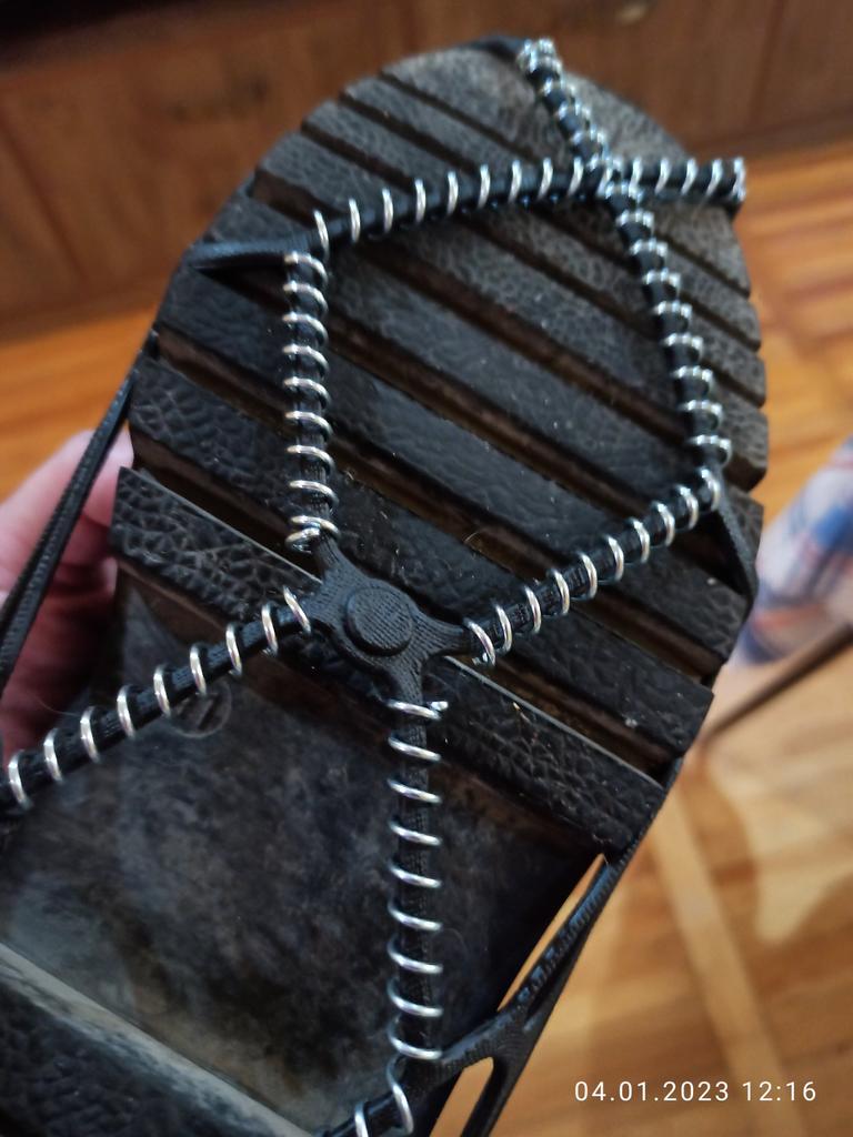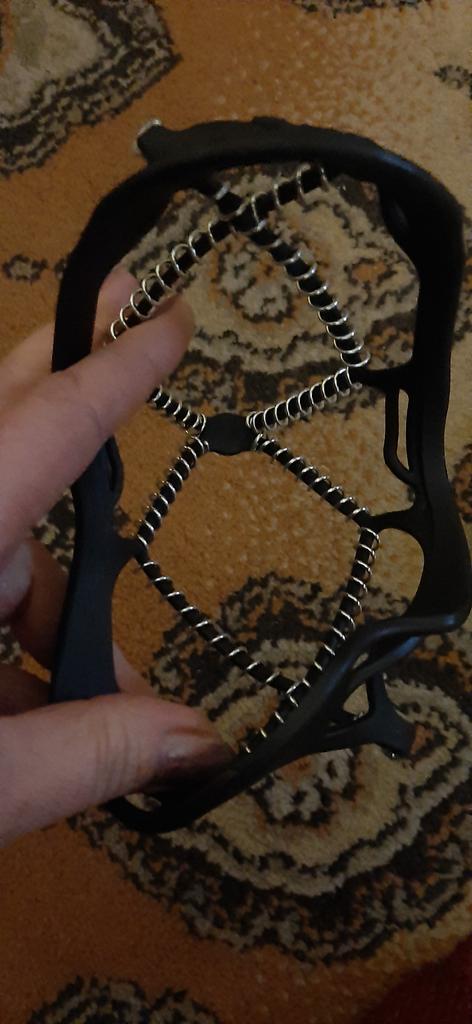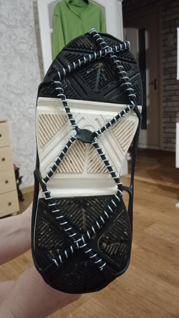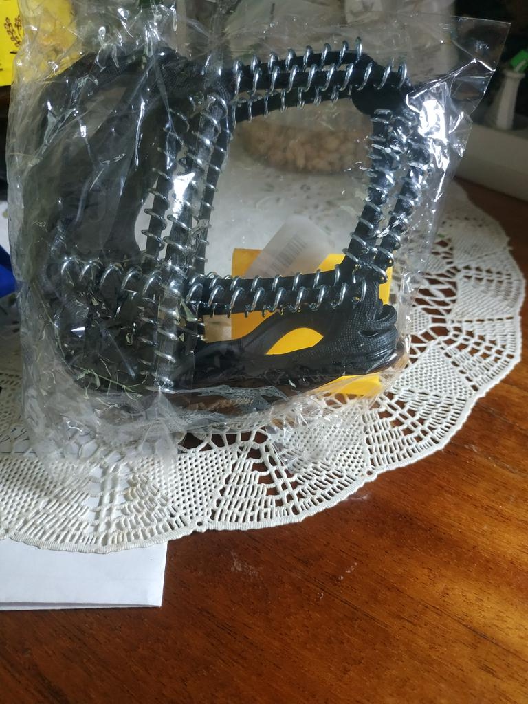 Necessary accessories for safe walking on slippery terrain. The skeleton is made of rubber, so it adapts to very different shoe sizes, but on a large number 44 and above, force is needed to be stretched enough. And they must be mounted on clean shoes, separately. It will not work to easily mount it while walking down the street. It remains to be seen how much anti-slip effect it has and how well it stays fixed while walking.