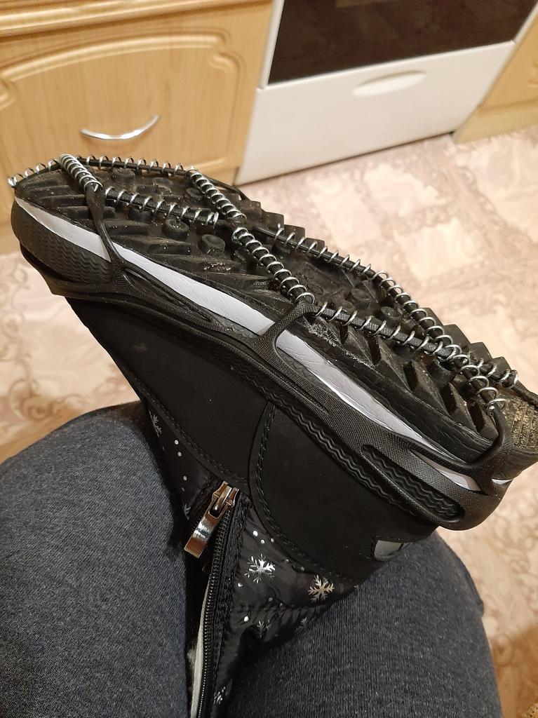 The idea is good, the springs on the sole are also good, but the rubber fastening on the shoe edge broke after fifteen minutes of wearing the device and money wasted! I don’t even want to put the second pair I bought on my shoes, it’s just a hassle and this is for my wife’s size 37, although I ordered the largest size!