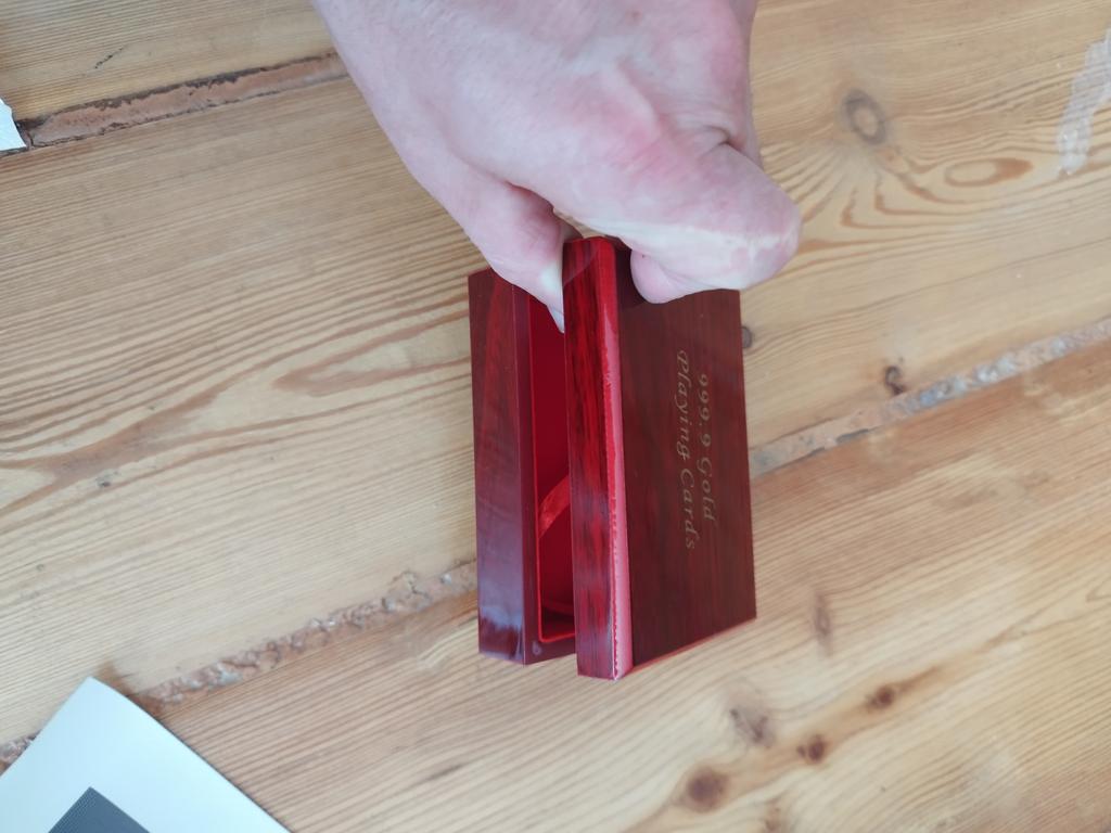 Lovely solid box. Very nice! No cards in it so im going to use it for my tarot cards. Big thumbs up 👍👍