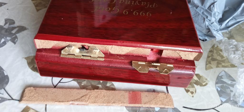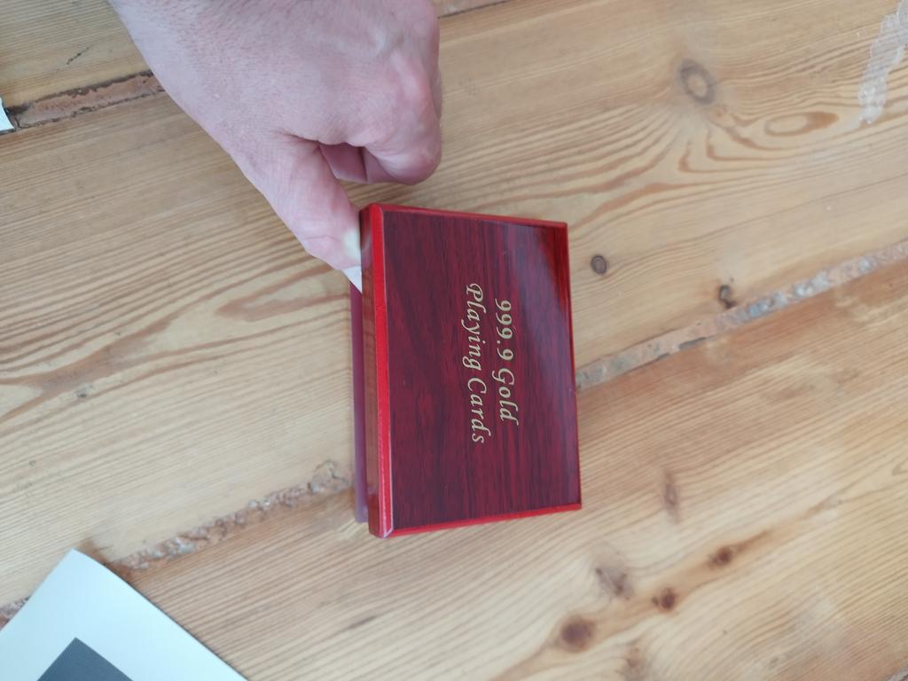 The box is broken and there where no gold cards in it, so very disappointed in it. Would like to get my money back please.