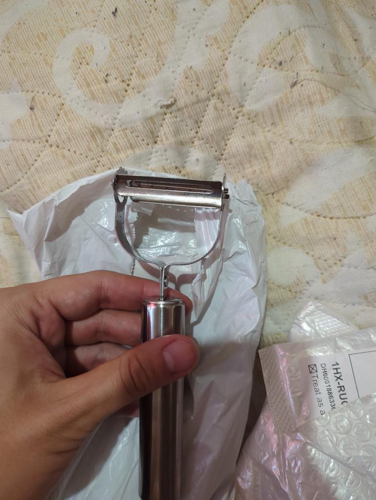 Unfortunately, the knife did not live up to my expectations; it did not cut the cucumber into strips, but tore it into shreds. I tried peeling potatoes with the other side, but it wasn’t very convenient. But it will be possible to cut into small plastic pieces for salad, making movements from yourself