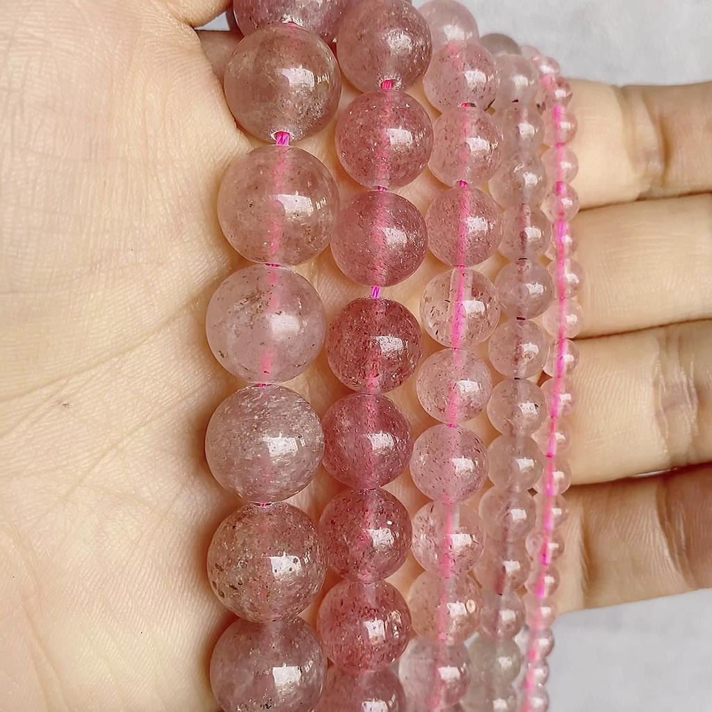 Strawberry Quartz Round Spacer Beads, Natural Pink Stone Loose Beads for DIY Bracelet Making