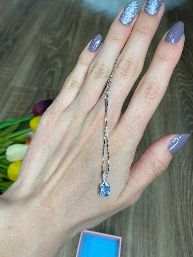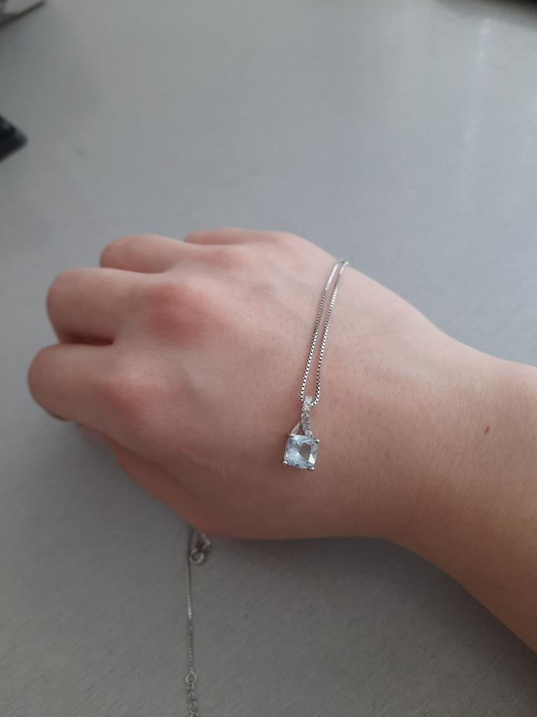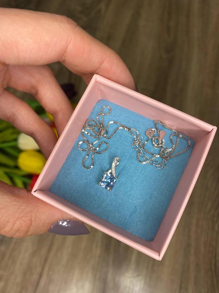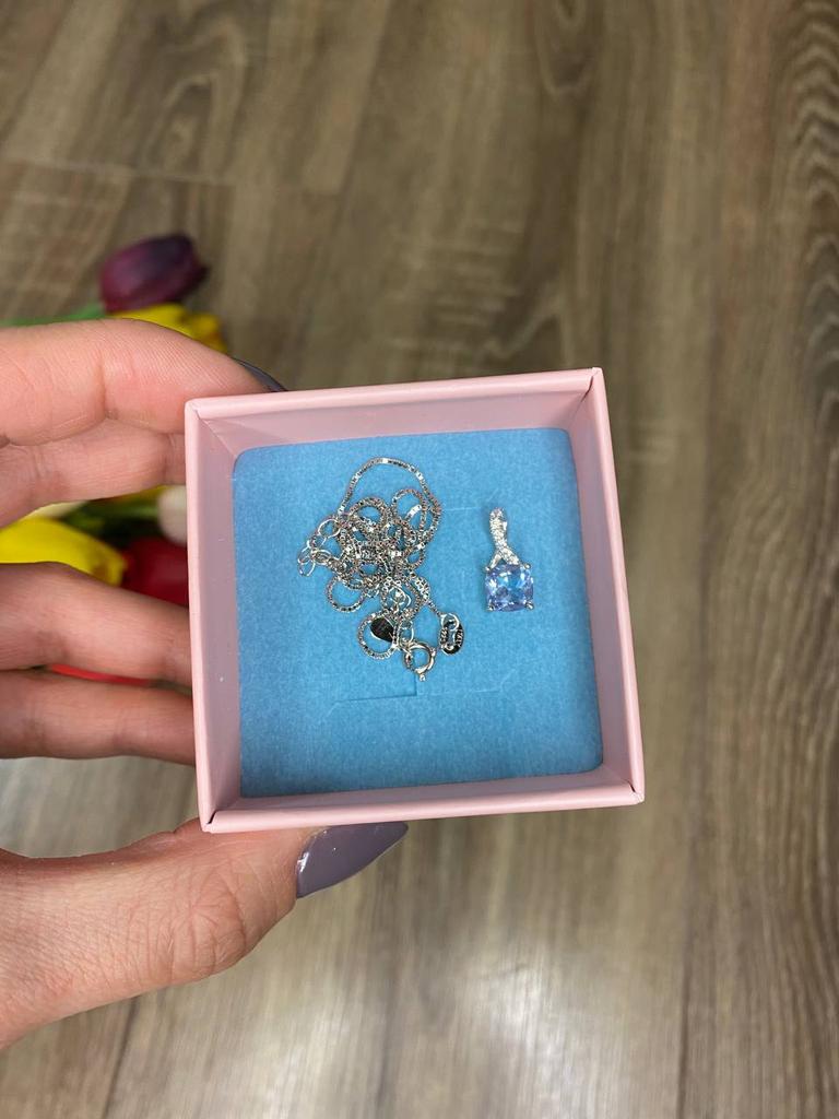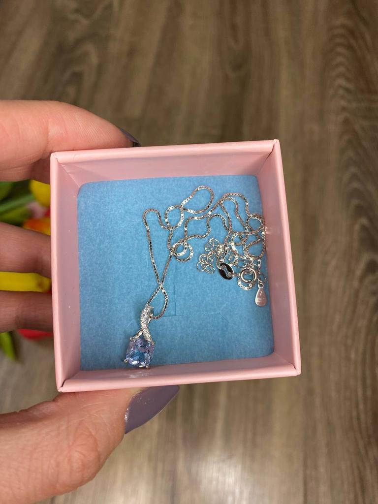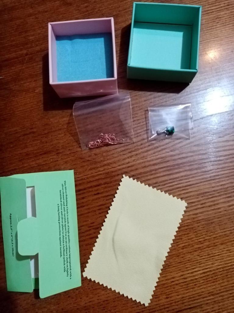 925 silver necklace (it has the seal and you can see it in the last photo if you look closely). I already had this same necklace and pendant but with the pink stone and I use it a lot so I also ordered this one in green to combine with different outfits. They have nothing to envy to those you can buy in stores. I find them elegant and feminine. I really like the quality, even of the chain. They don't get ugly when they get wet, I take a bath with them and without problems. They also come with their box to store them and with a chamois to clean them.. Perfect also if you want it as a gift ๐๐ป