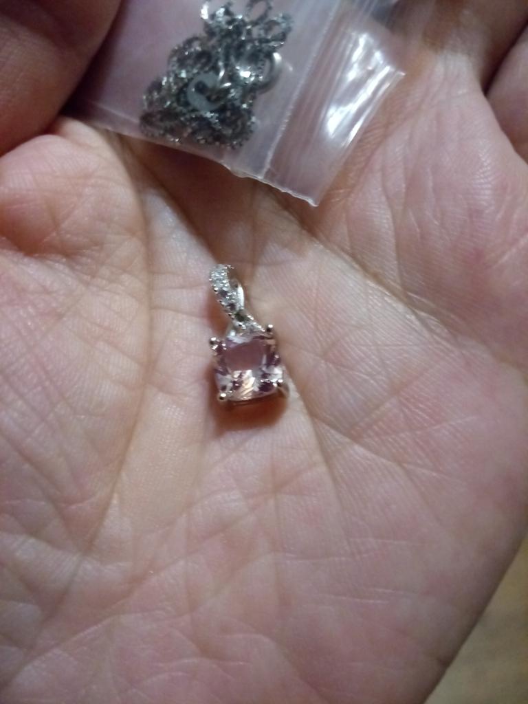 UMCHO 925 Sterling Silver Pink Gemstone Pendant with Silver Chain. 1. The pendant looks much smaller than the promotional photos. 2. I can't give it away again, because again, despite the description, the gift box and the jewelry cleaning cloth are missing!!!! ๐ณ๐๐คจ๐ณ๐ ๐ฆ