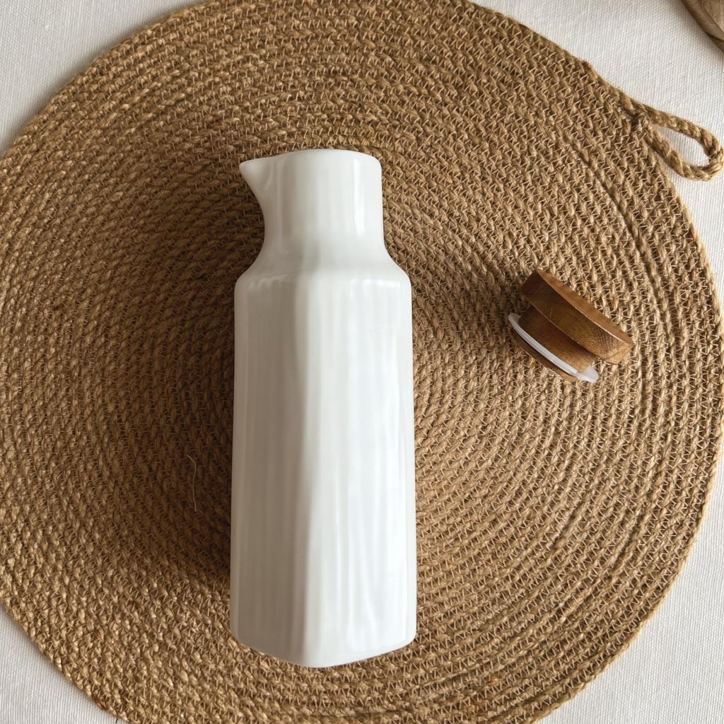Japanese Ceramic Salt Jar with Bamboo Lid Soy Simple Sauce Bottle Creative Leak-Proof Oil Vinegar Bottle Kitchen Tableware