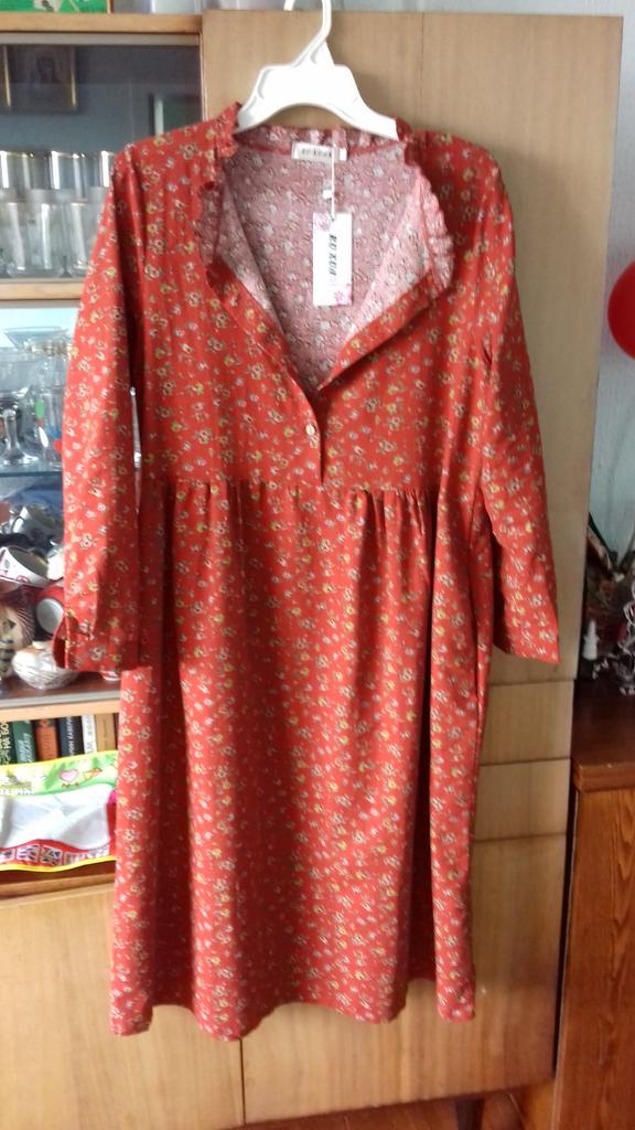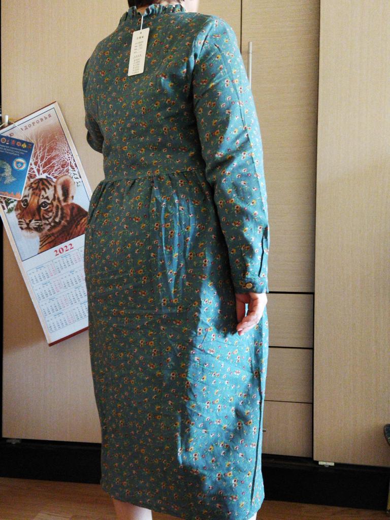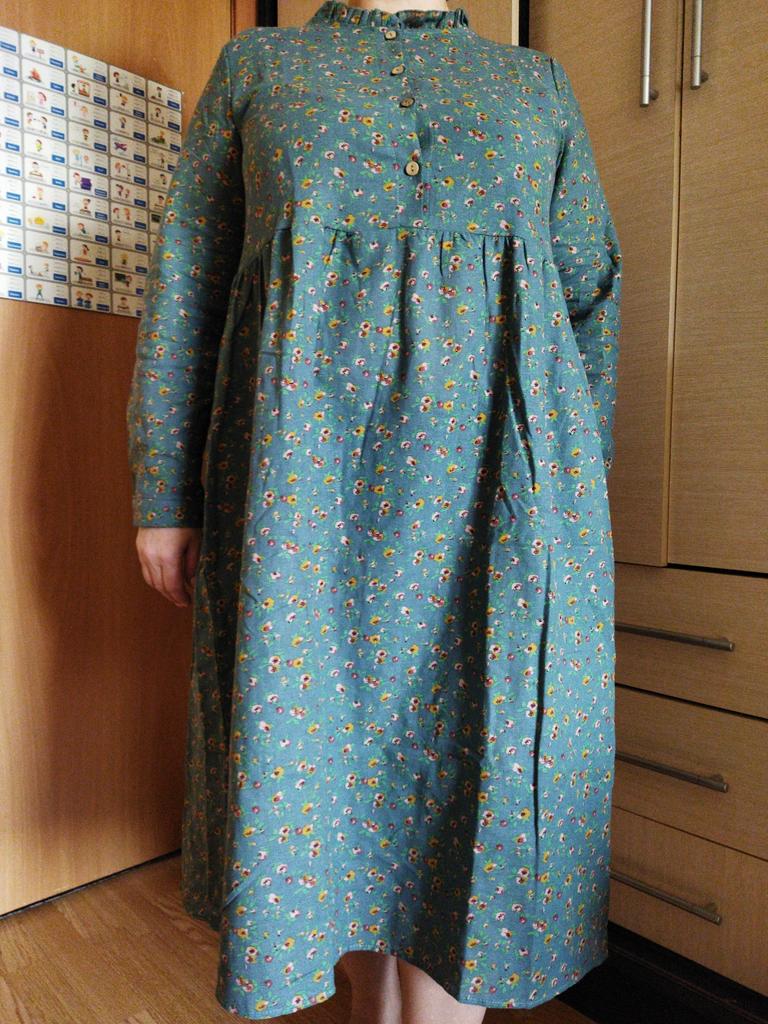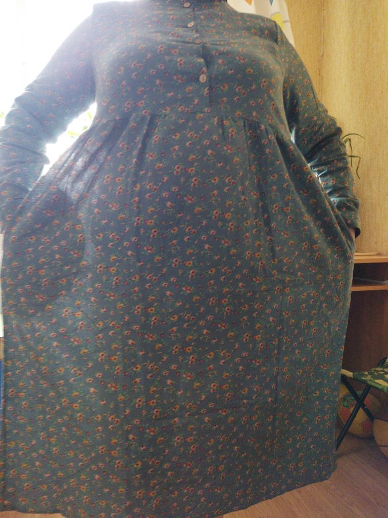 I already bought this dress in brown. The new green dress is the same size as the previous one, but slightly smaller in the bust, but longer. Lines are not perfect everywhere. The pocket openings are small. The threads are coming out of the lines.