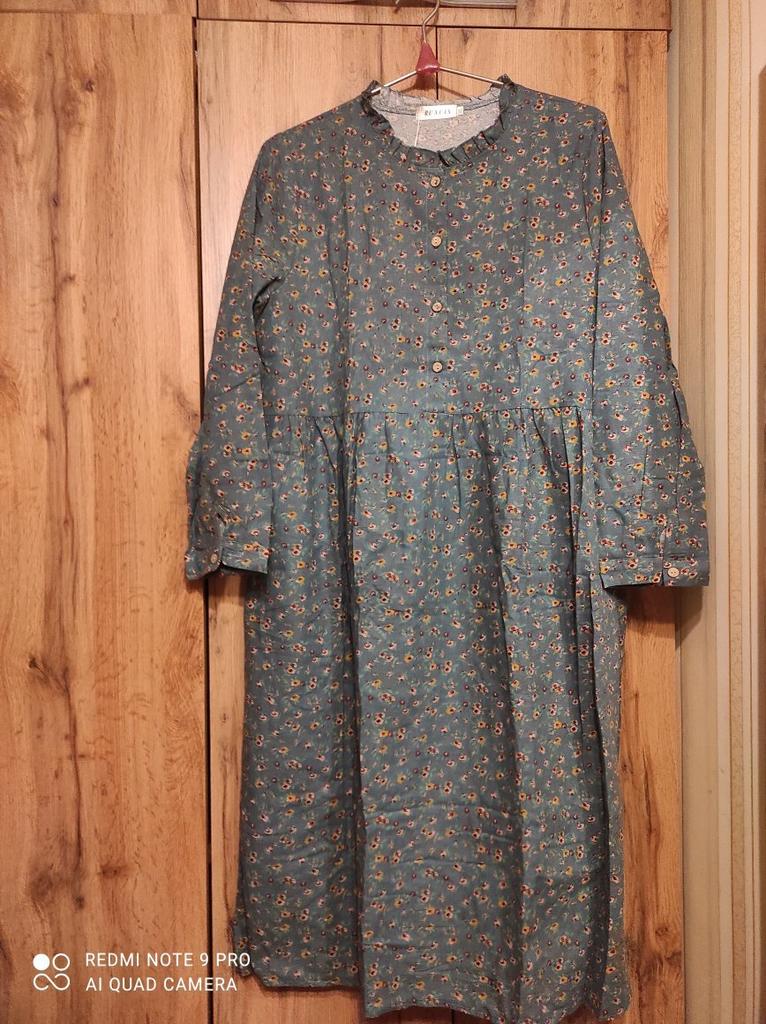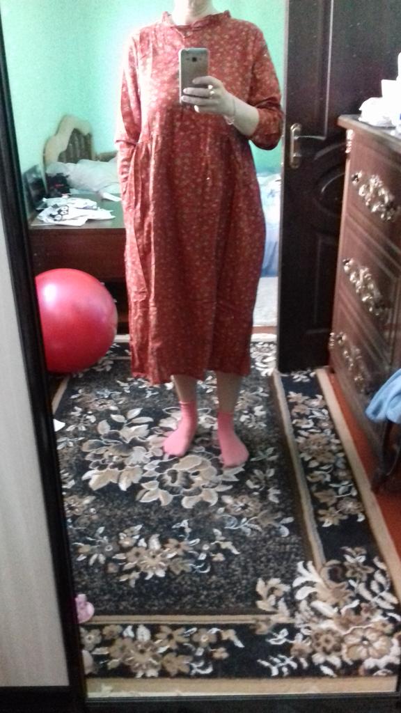 Dress made of cotton, size xl fits size 48-50, I ordered a blue color, but the dress is gray, the color is dull, as if worn out, the quality is not very good, the threads stick out, the gathers at the waist are not the same. In short, girls, I donβt recommend it at all