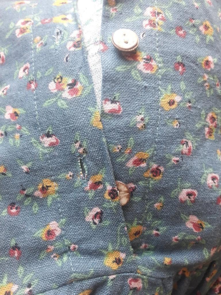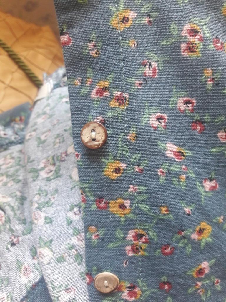 As seen in the photos πΈπΈ It's midi cut, oversize and micro corduroy. The chest part is buttoned like the cuffs and has pockets! π₯°π₯°π₯° The print is little flowers and it has a maho neck, but gathered that gives it a precious touch.. The measurements π conform to the seller's instructions but it must be taken into account that it is very wide cut. I arrive within the established period and in perfect condition ππ