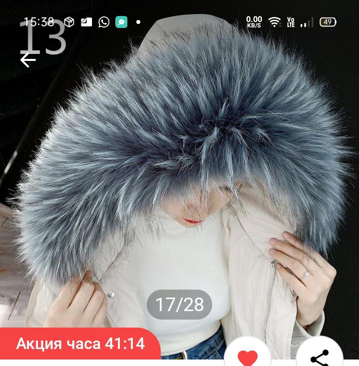 The collar is good, but I missed the color a little. I ordered dark gray for a dark blue down jacket, and received light gray . And so fluffy, smooth, not shreds.