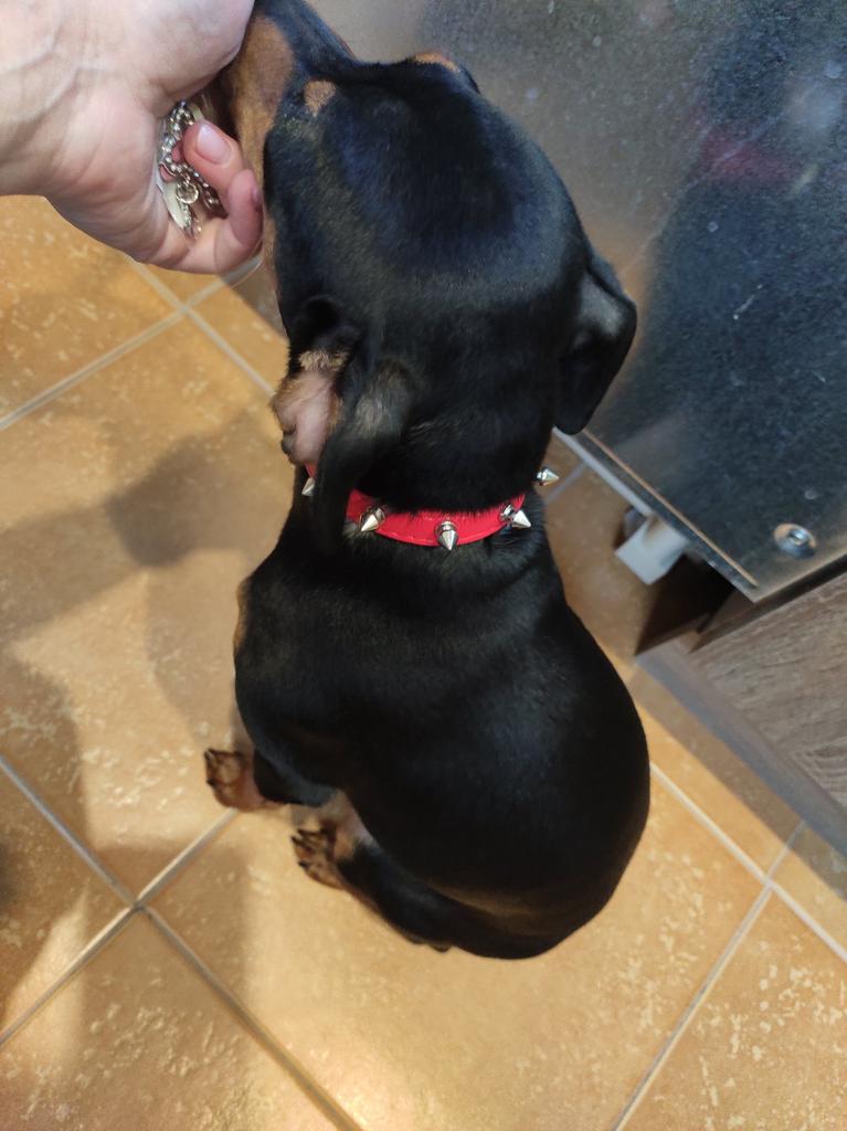 The Jagd Terrier is 3 months old, the collar fits perfectly, but so far it has posed for a...