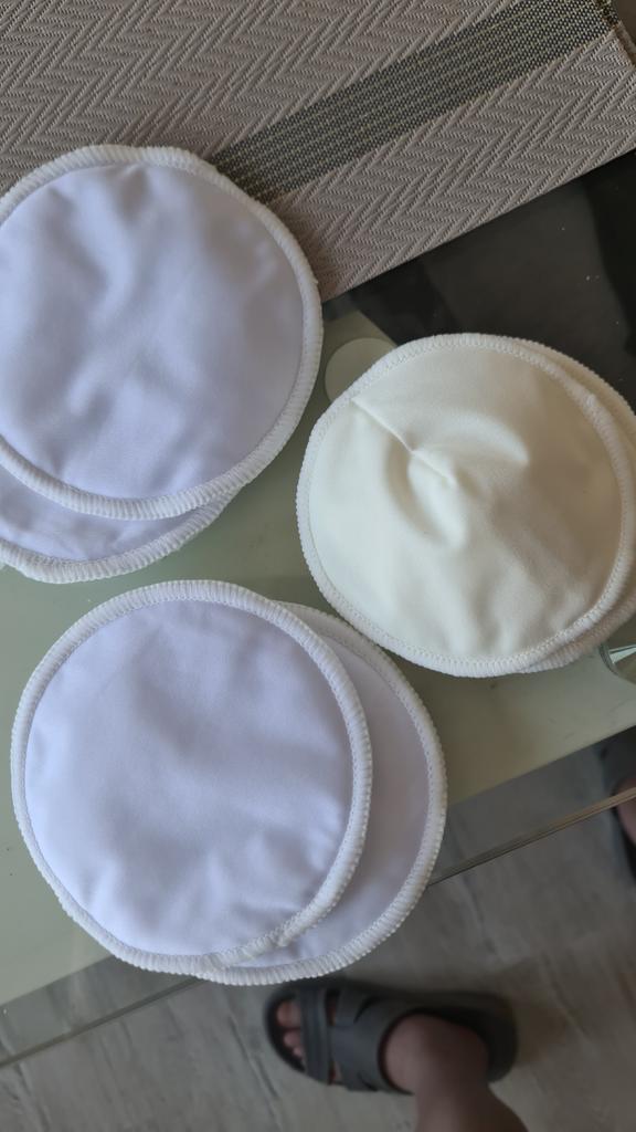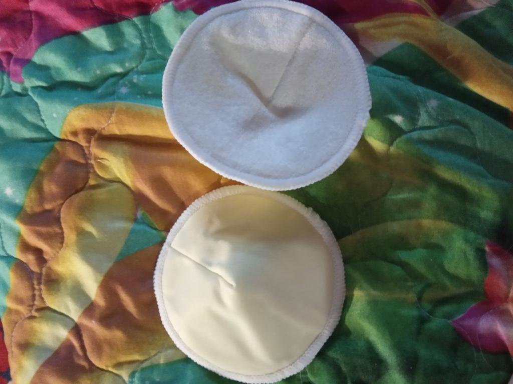 Soft, highly absorbent. The inside is like a terry towel. On the outside there is some kind of fabric that does not allow moisture to pass through. They do not swell when they gain moisture. It’s not convenient that you can’t attach them to your clothes. Easy to wash.