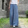Johnature Spring Autumn Full Length Retro Pants Elastic Waist Tie Dye Wide Leg Women Lace Up Pants
