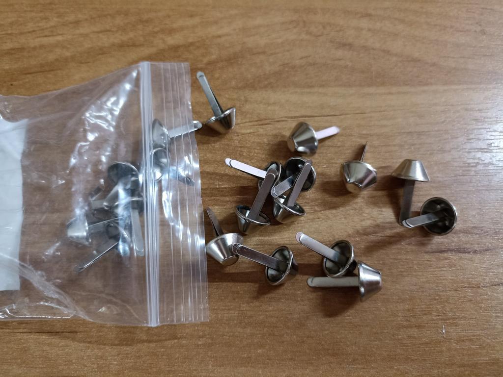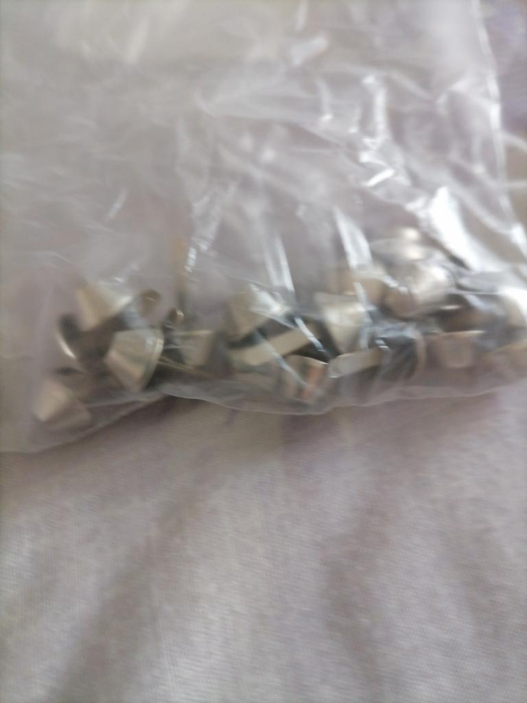 Good rivets, easy to install. I use them when making bags on plastic canvas. If you look closely, you can see them on the bottom of the bag.