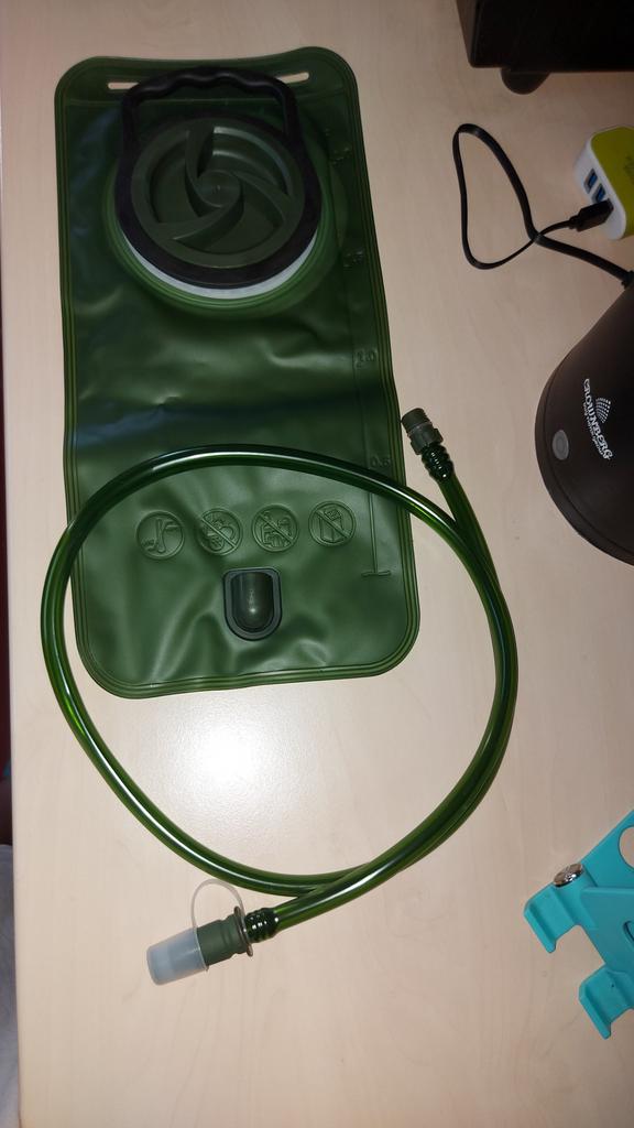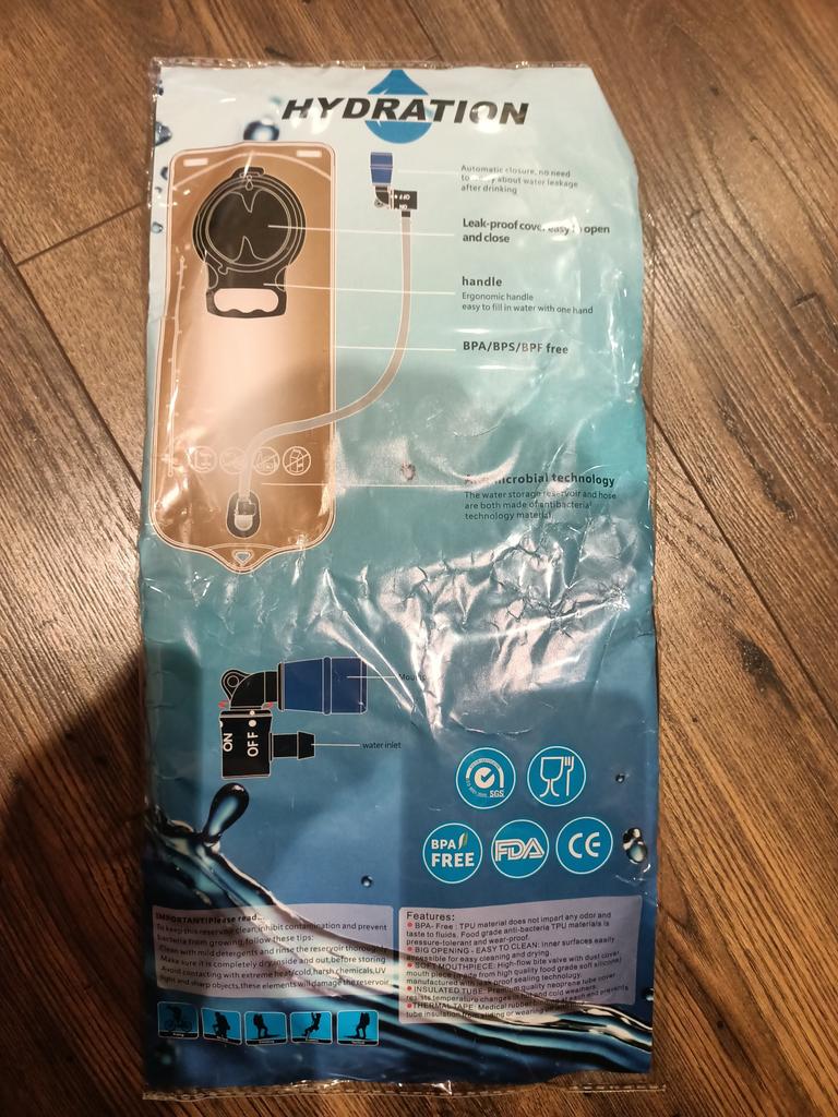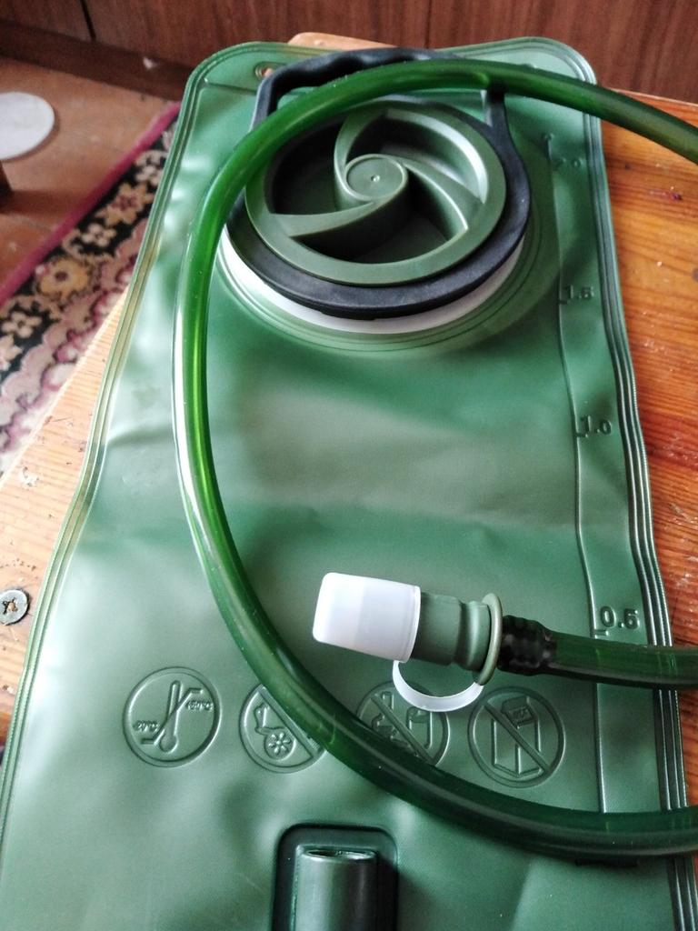 The parcel went for a month from 07.07 to 08.08. The hydrator looks good quality, the neck is wide, the tube screws into the body, the other end slides out and unlocks for drinking. I will try it with water and add a review.