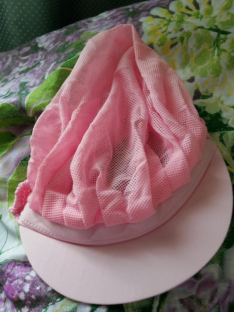Hat in! π. The visor protects from the sun, is light, the hair is all put together, allows air to pass through well, and is not hot in it.