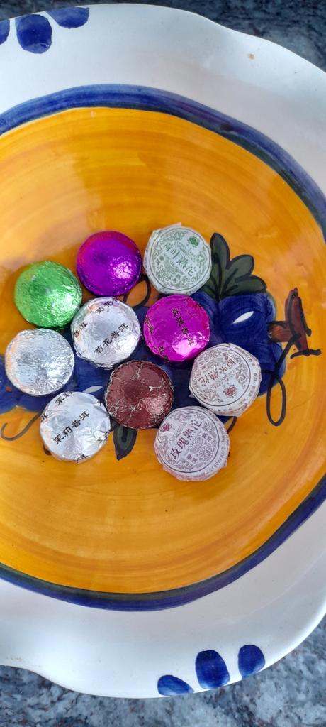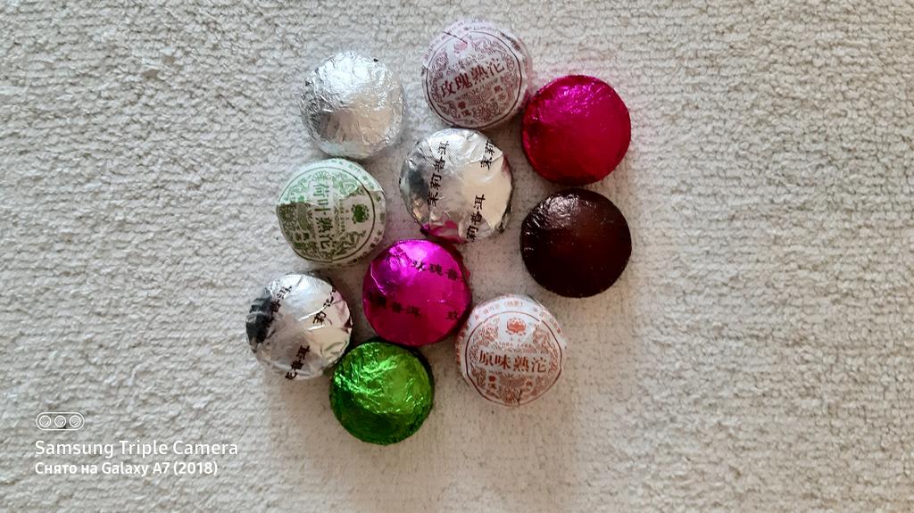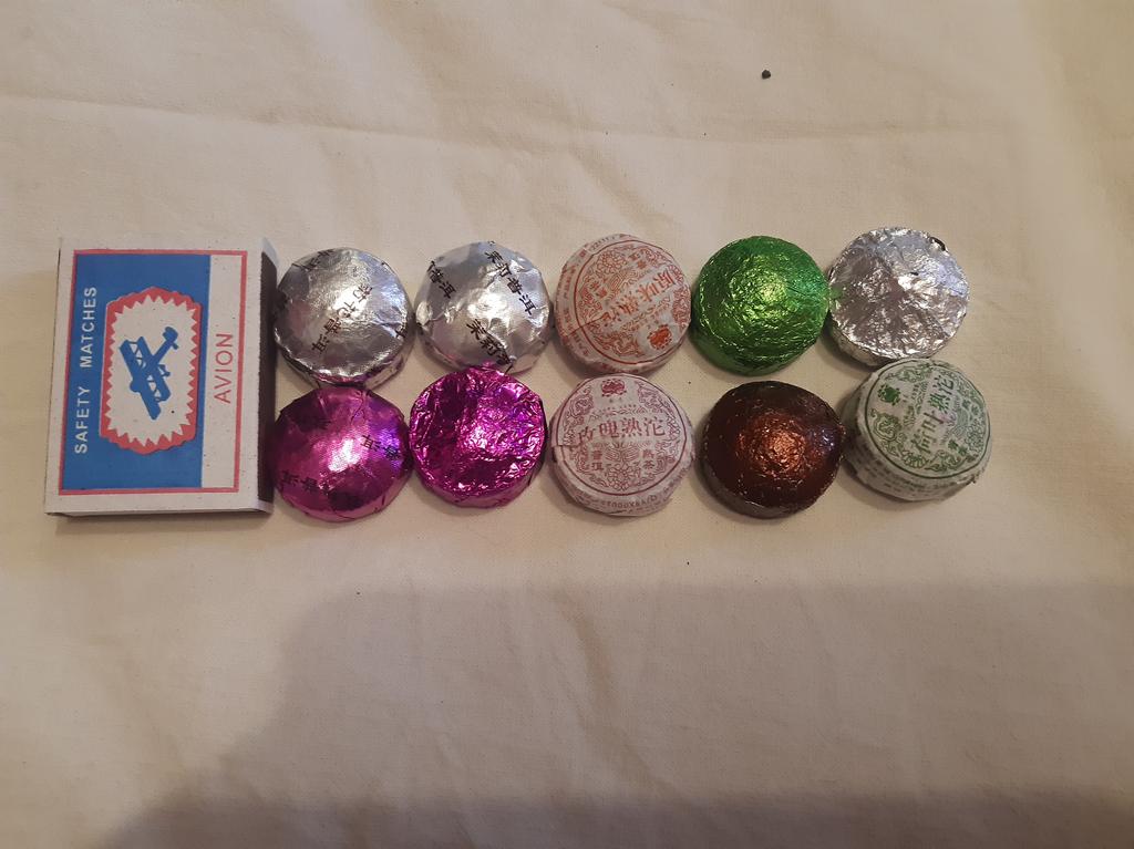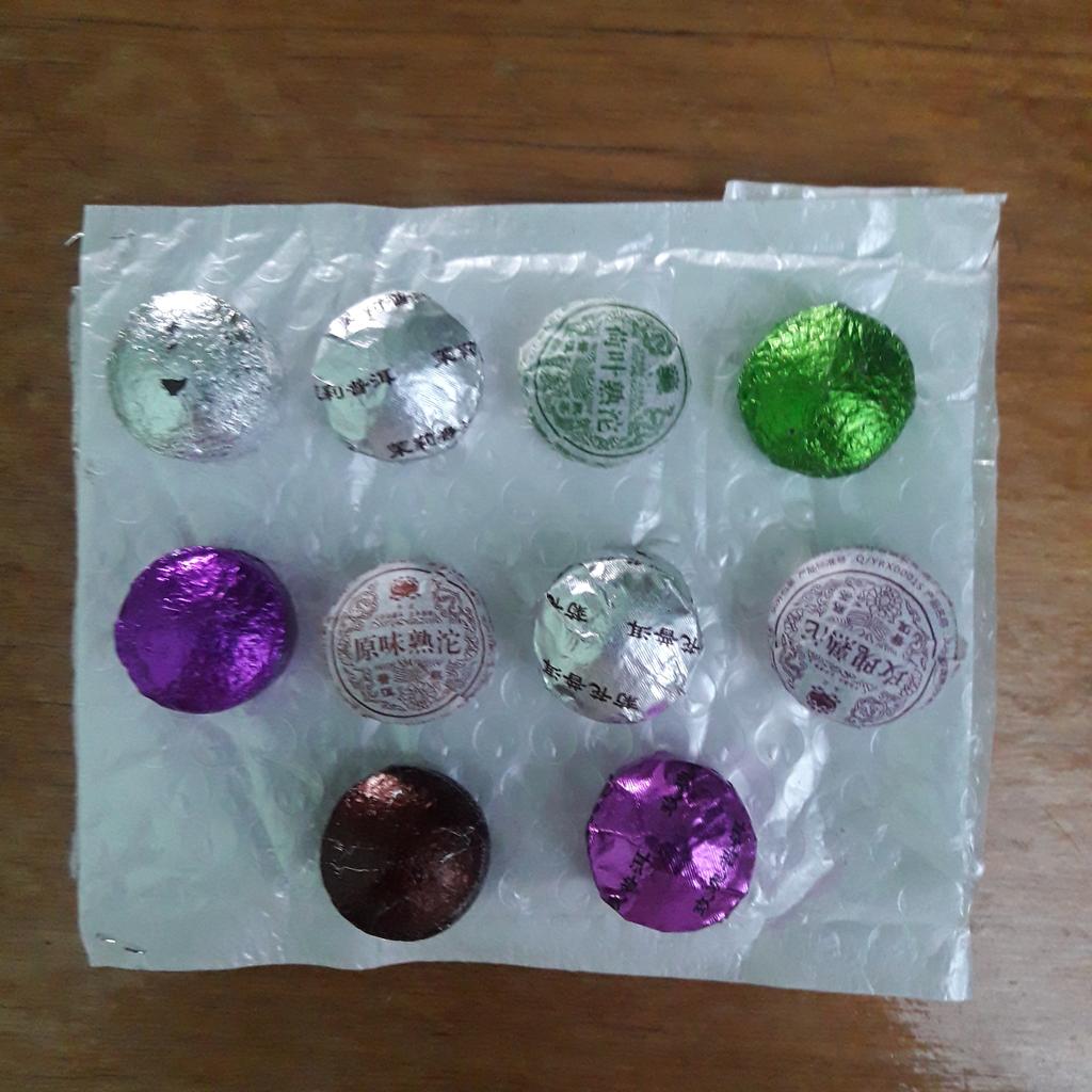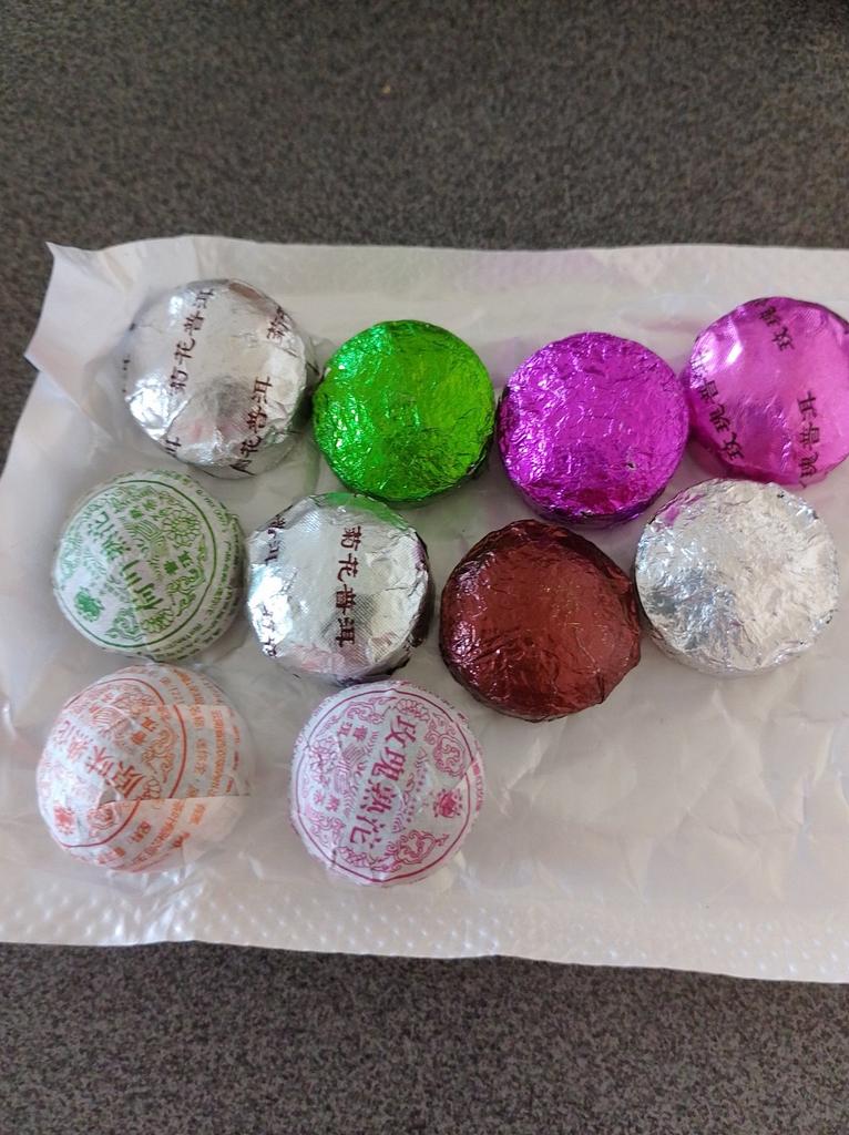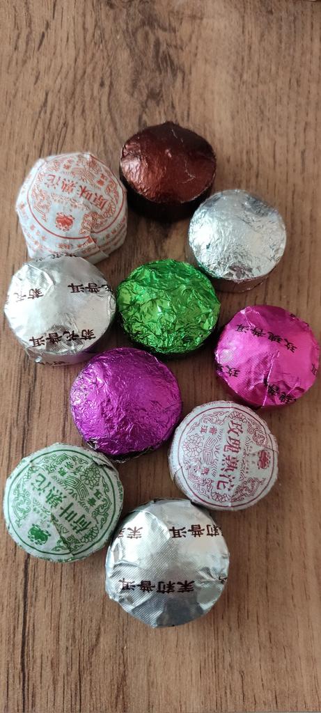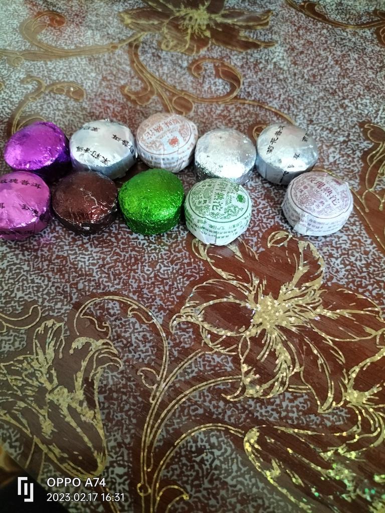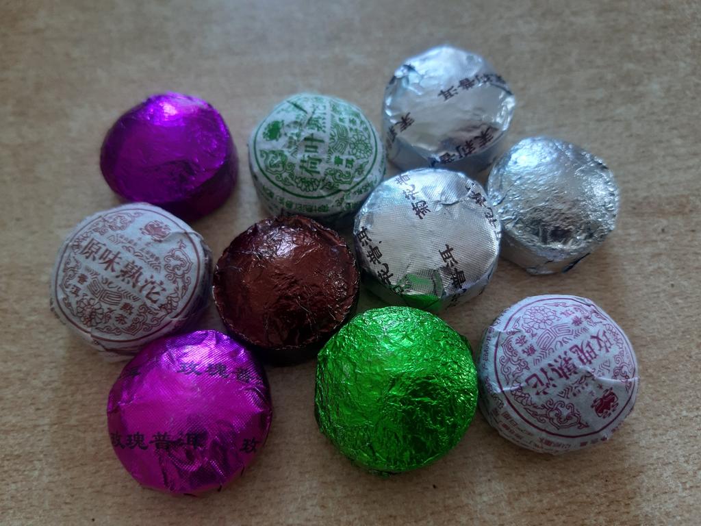 10 briquettes of 5 g, some in the same package, I understand that they are the same. I thought there would be a tab with a description of the types of tea. The taste is not bad, but nothing special.