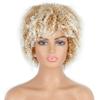 LISI HAIR 14inches Afro Kinky Curly Wig Synthetic Wig With Bangs Mixed Gray Brown and Blonde Wig for Black Women Daily Wig