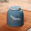 Portable Hand Painted Crane Tea Caddy Ceramic Canister Sealed Spice Jar Storage Tank Packing Box