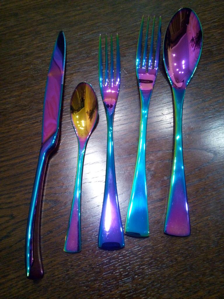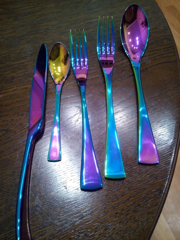 Luxury Shiny 5Pcs Portable Travel Cutlery Dinnerware Set Knife Fork Spoon Dessert Fork Teaspoon Tableware Set Stainless Steel