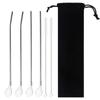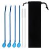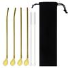 Gold Long Straw Spoons Metal Stainless Steel Straight Scoop Reusable Straw Cocktail Coffee Stirring Drinking Spoon Bar Accessory