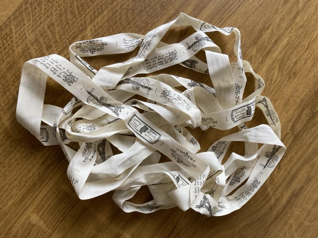 Fabric ribbon in a natural design with a print of the Eiffel Tower, a retro font and a label. The images are separated by an imaginary comma, so you can cut them instead of labels, for example on hats, sweaters or blankets. Alternatively, the ribbon can be used as a gift wrapping gift. The ribbon is 2 cm wide, there were 4.5 meters in the package and four motifs are repeated.