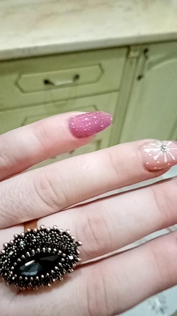 I give it five stars, but I don't recommend it. The item is made sloppily. The stones are glued on crookedly. There are even some sticking out, like thorns. It will be made as if not for a regular hand, but for some kind of holder: instead of an oval shape, it is made as a rigid circle and presses on the hand.
