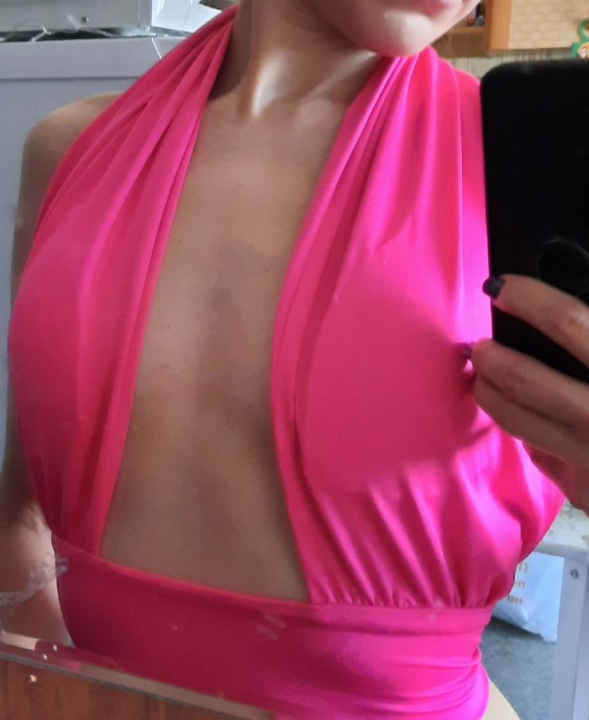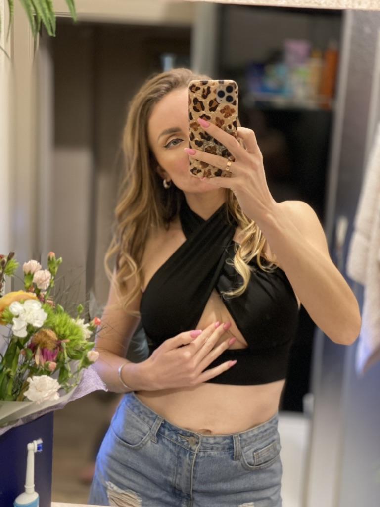 It was quite difficult to choose the size of this top, judging by the reviews, because girls with the same shapes chose completely different sizes. I have a fairly large bust size, but I know for sure that the part under the breasts will have to be shortened.. Although the size seems large to me, it still doesn't cover much, so you can take a size smaller than L.