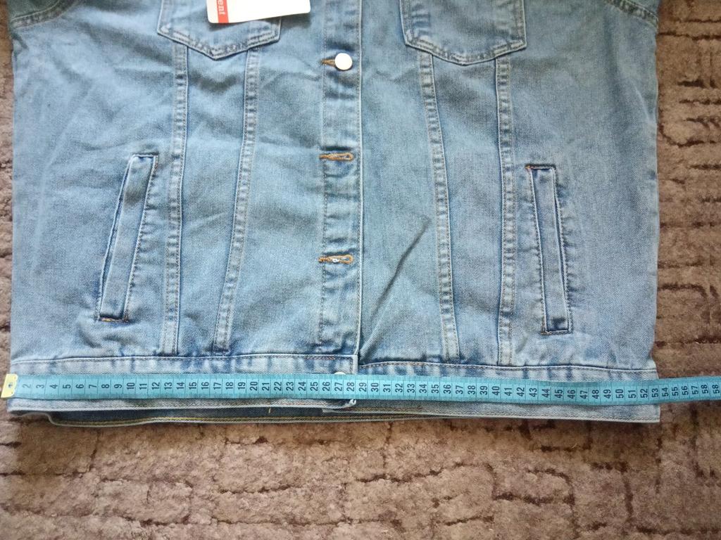 Fit size 56, the sleeves are a bit long for me, there is a slight smell, but overall it's a good denim jacket