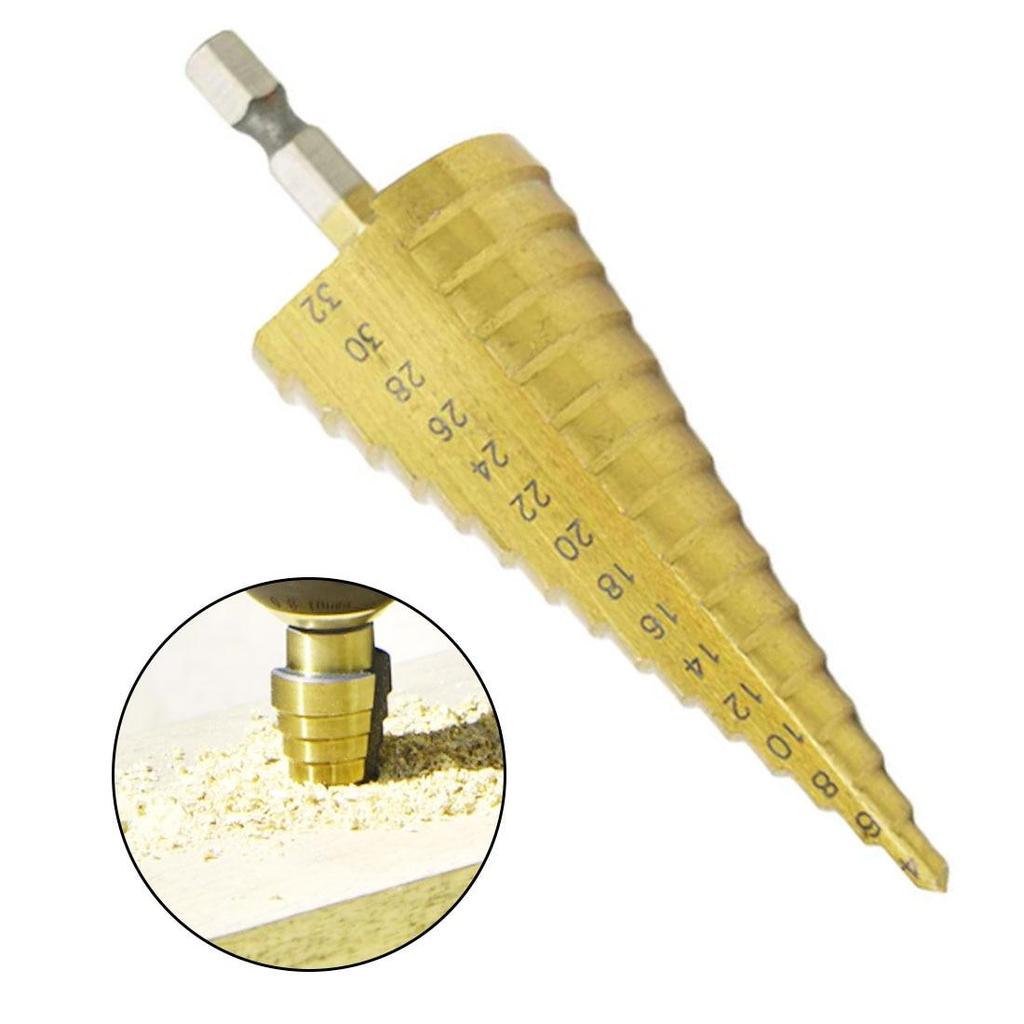 Step Drill Bit 32MM Metal Drills Spade Bit Staggered Step Drizzle Drill Stepped Metal Drill Bits HSS Titanium Coated Wood Tools