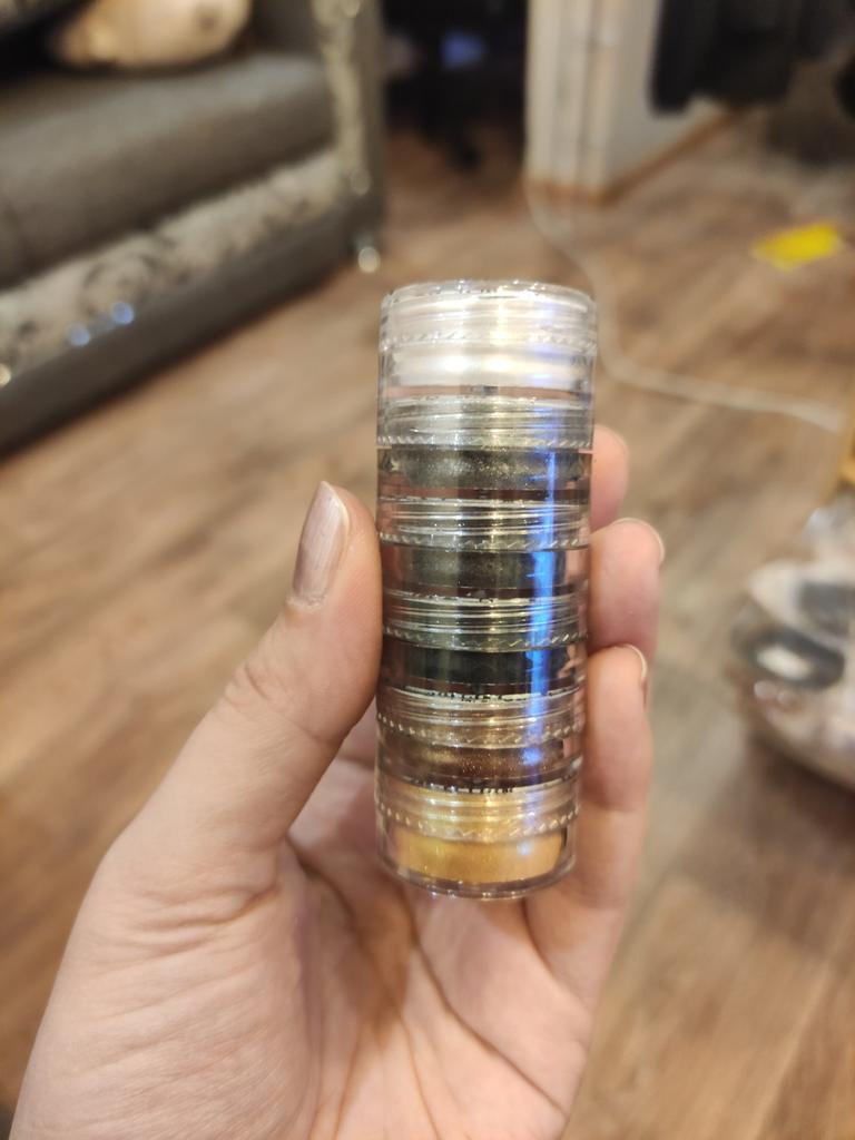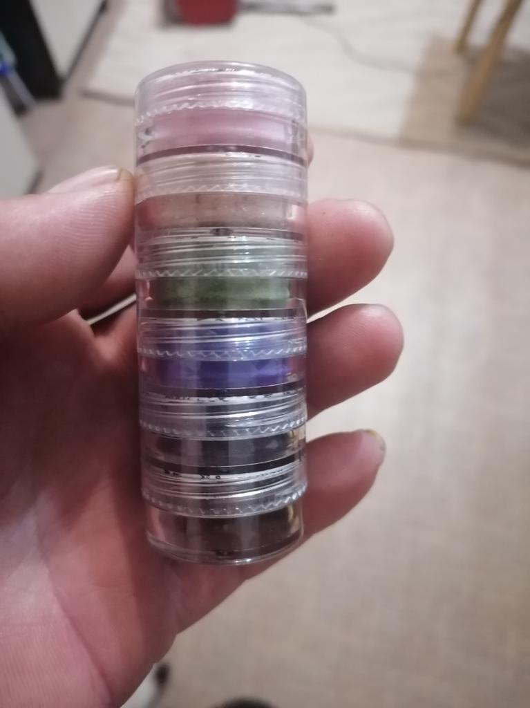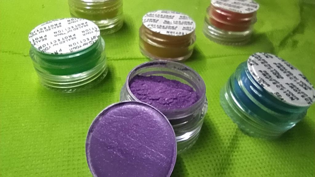The jars are not big. The colors are bright. Delivered without damage. Haven't tried it in the case yet.