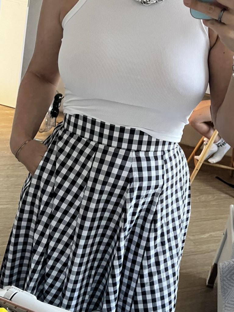 The skirt is absolutely van love. Excellent quality. I'm wearing the smallest size. The material is like a reaper. Keeps its shape and does not bleed through. I didn't even iron it. Just in love with this skirt 😍