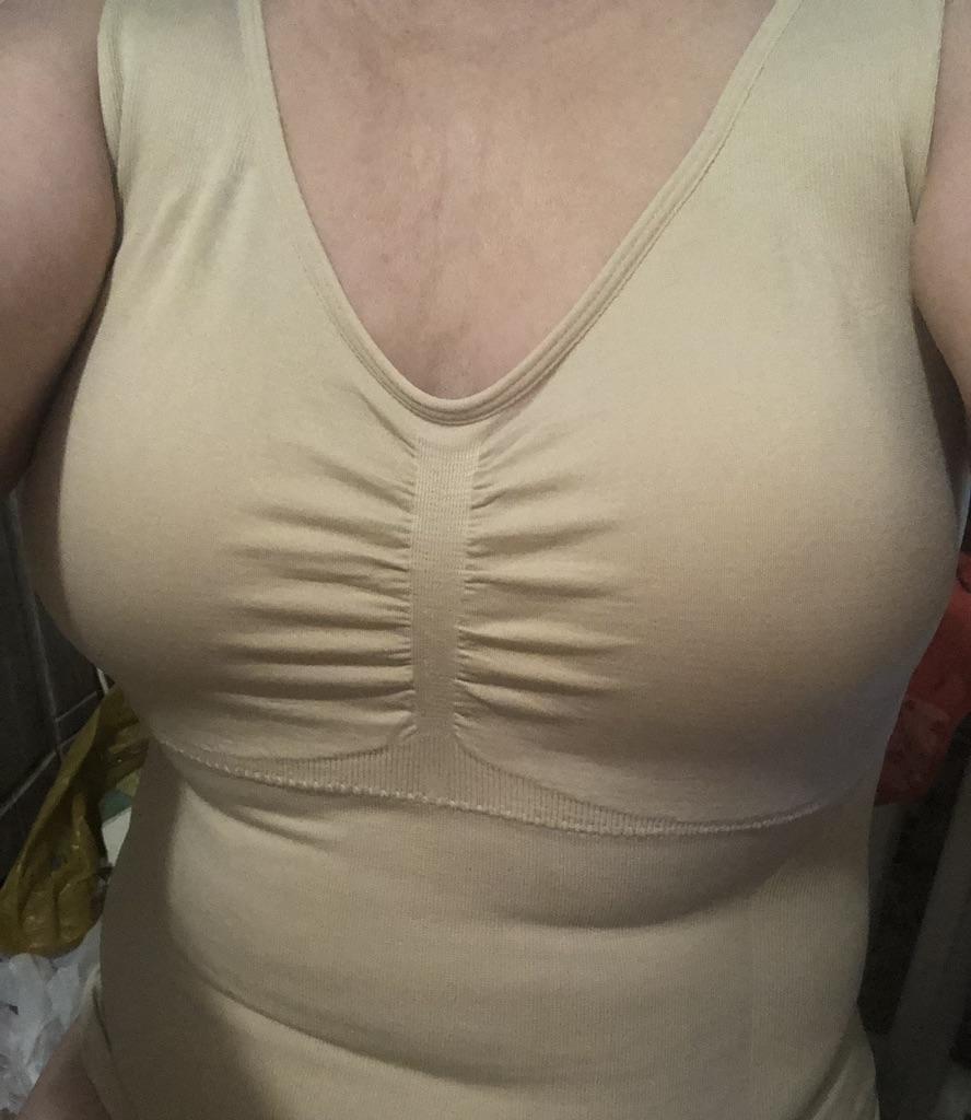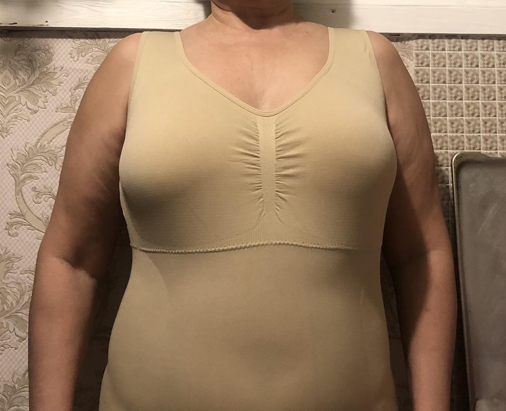 I put it on with difficulty for 54-56, but itβs for correction, so itβs normal, it pulls in well, itβs comfortable, you donβt need a bra, it holds your breasts perfectly