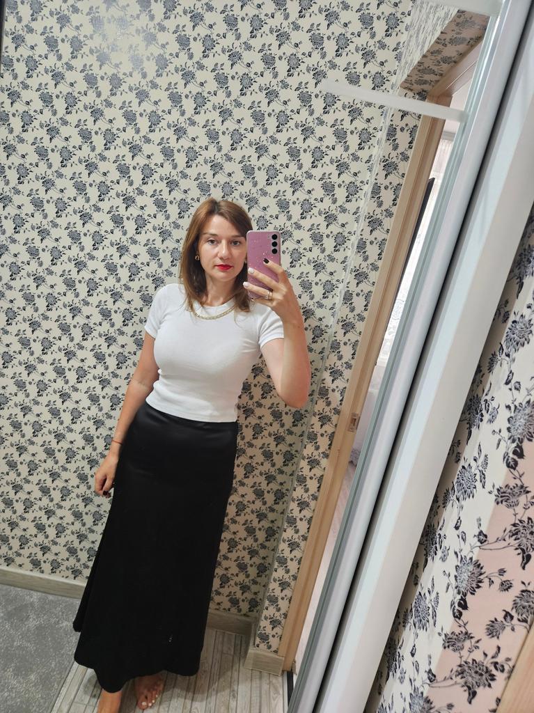 Beautiful summer satin skirt. Looks elegant.