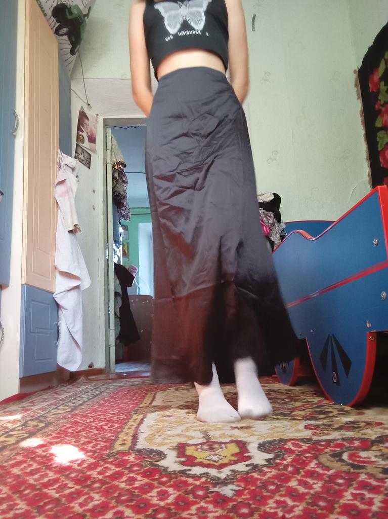 Cool skirt! I recommend it to everyone! This is a thin satin, so it is better to take it in black, so it will not shine through!