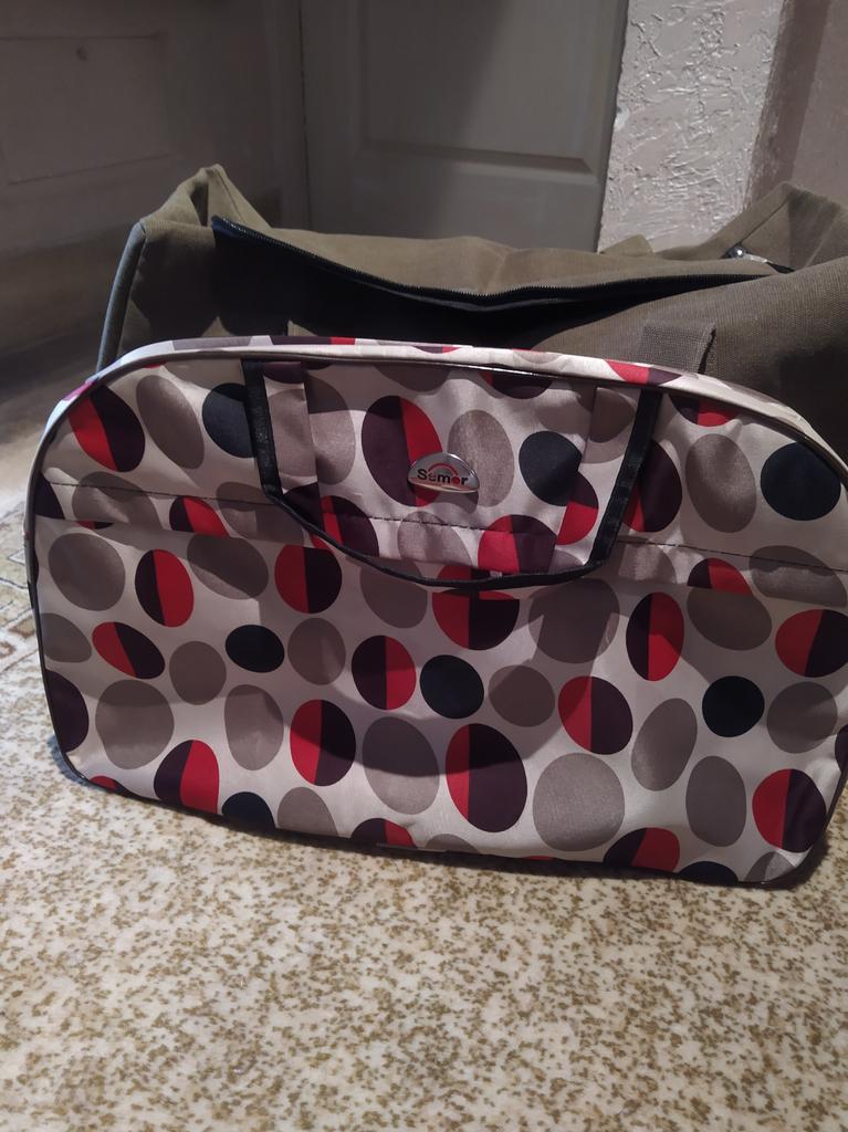 The travel bag looks fashionable ,..only the synthetic fabric of which the bag is made, smells very strongly of chemical composition .I hope it airs out