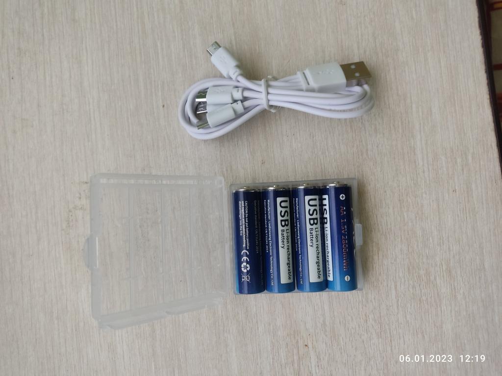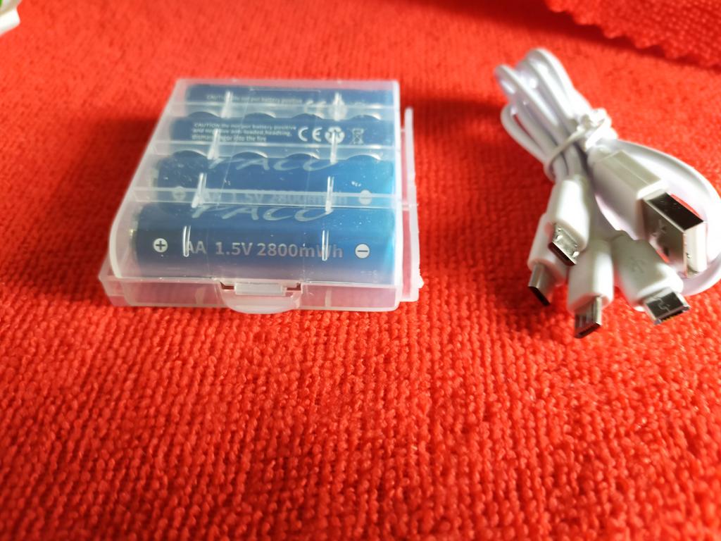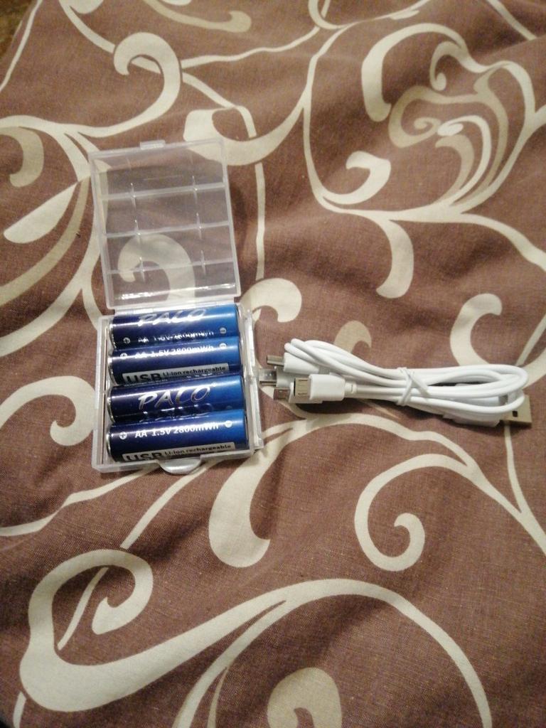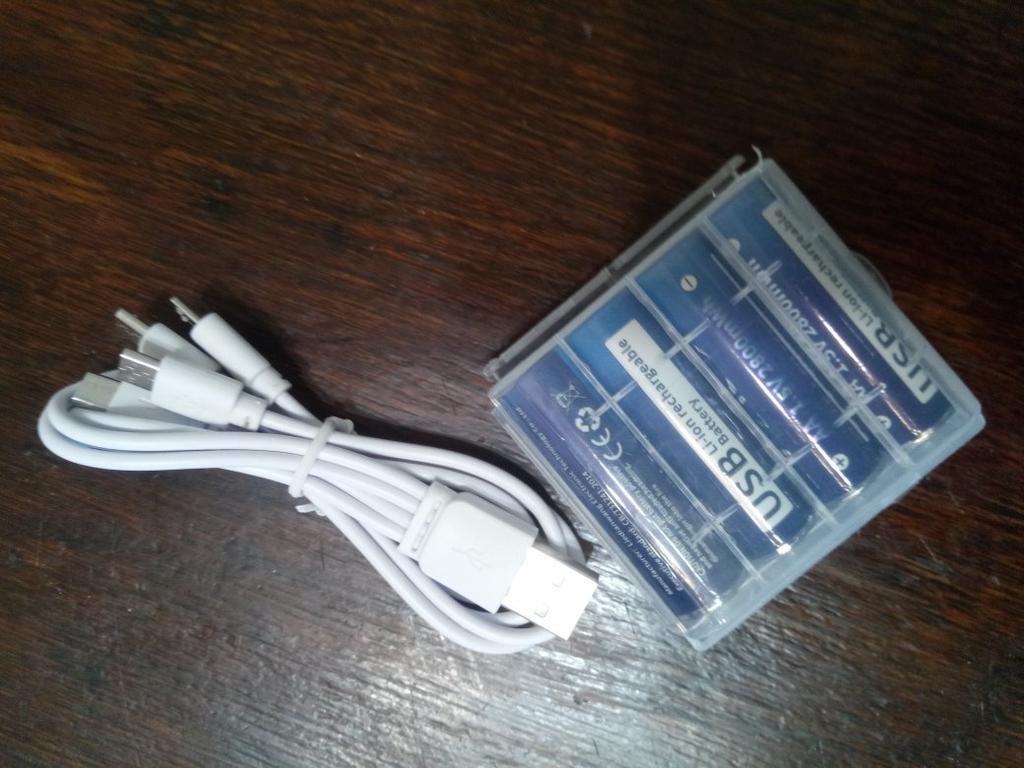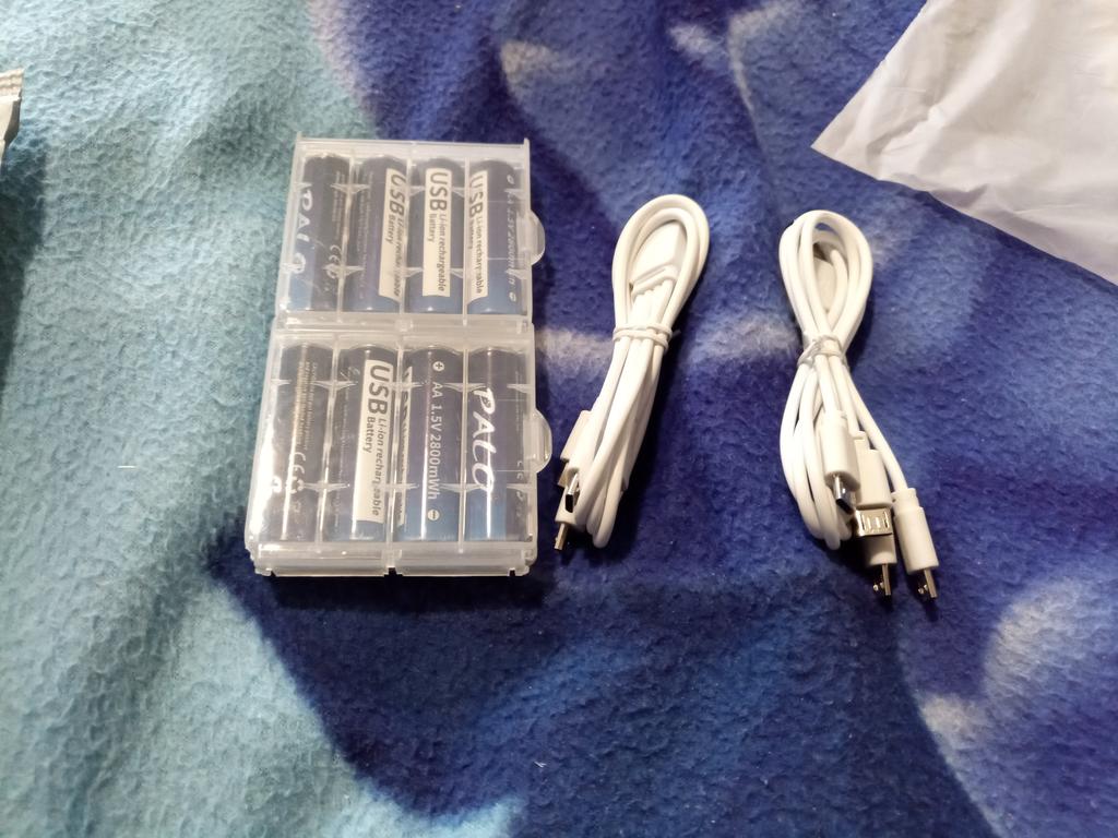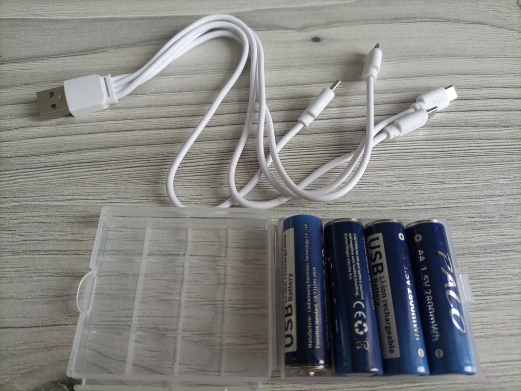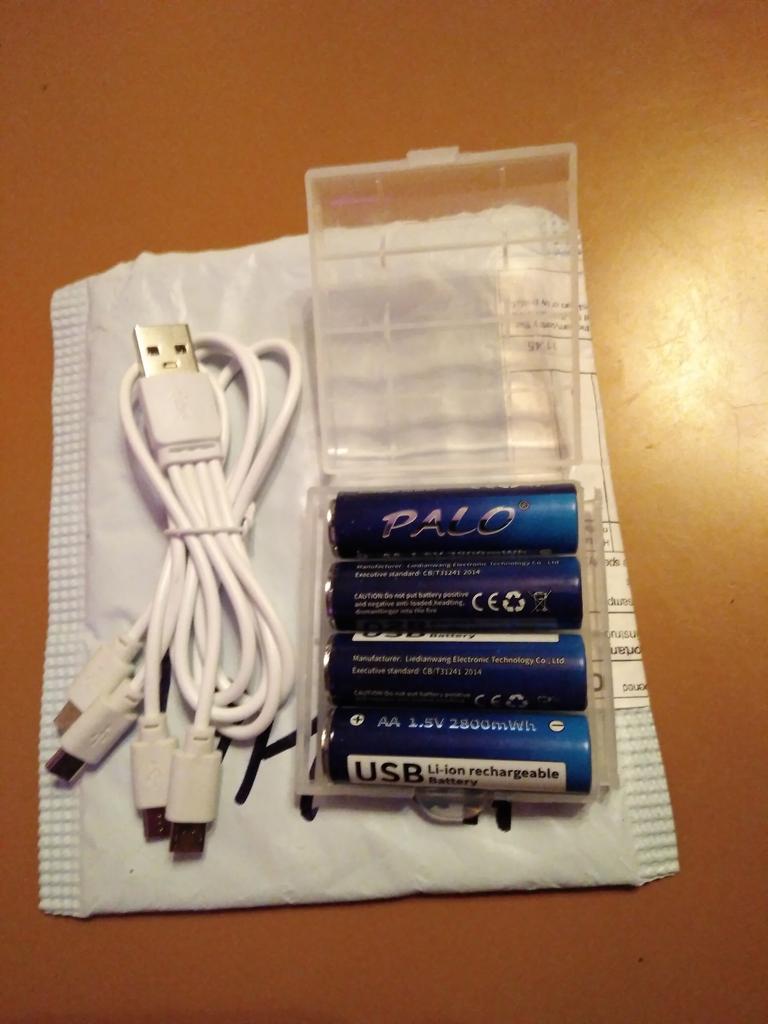 Includes one cord and 4 microusb, to charge all batteries at once. Declared capacity of 2800 mWh. There is no possibility to check. Delivery is surprisingly fast, it did not take 2 weeks. So far so good