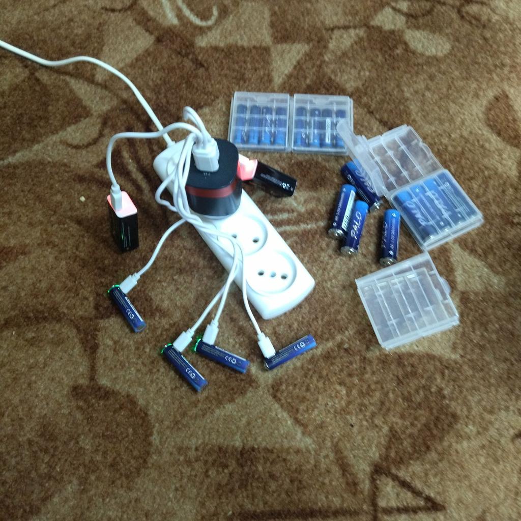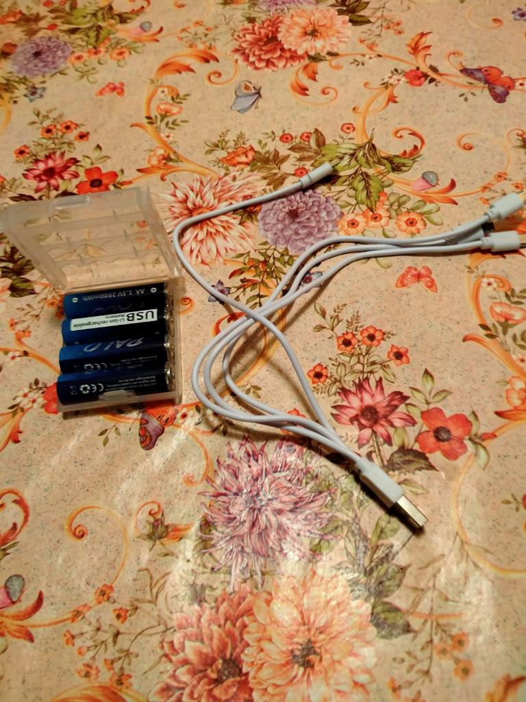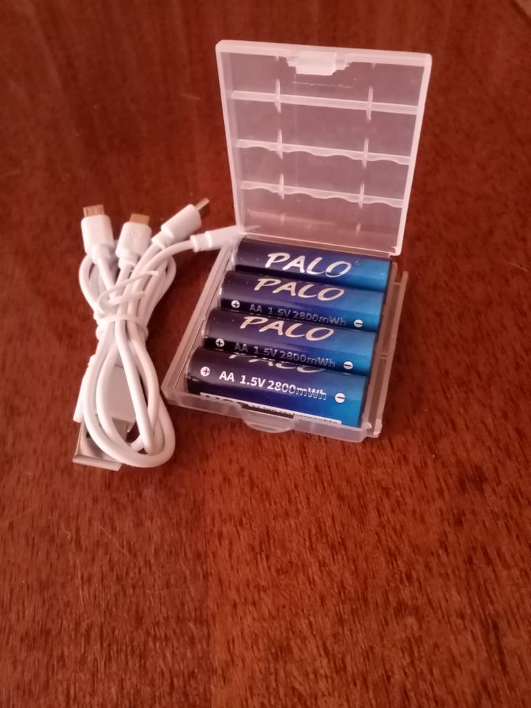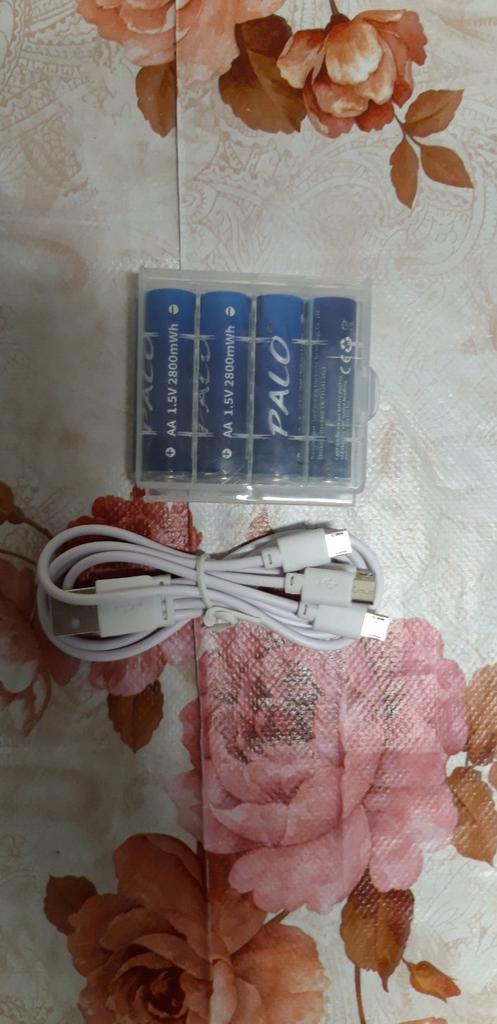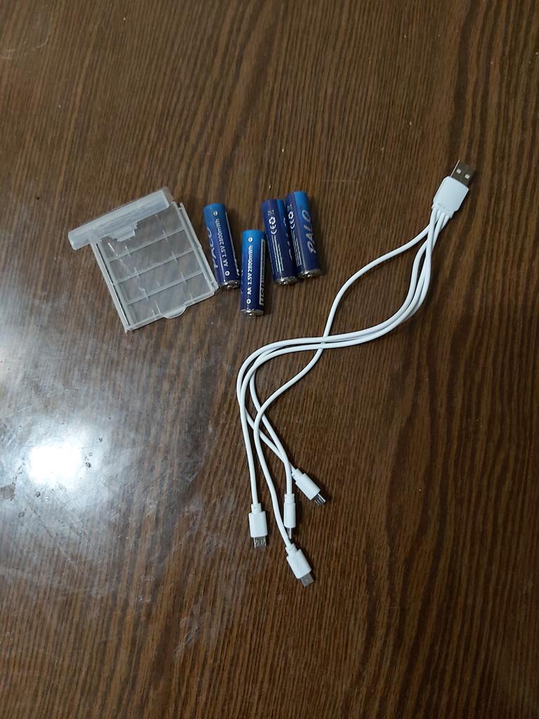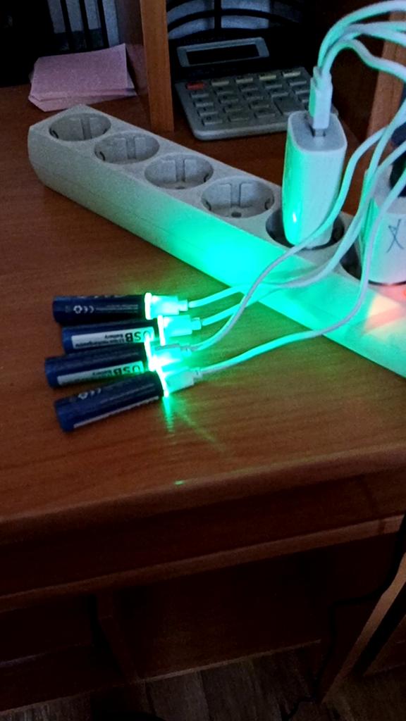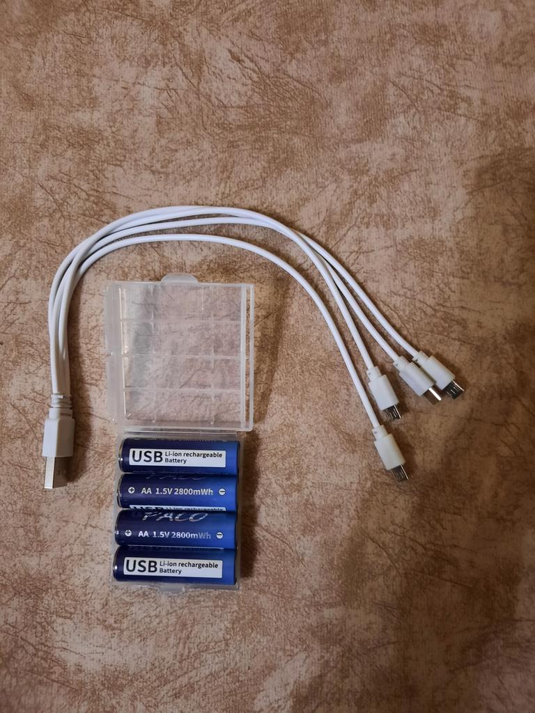 Includes one cord and 4 microusb, to charge all batteries at once. Declared capacity of 2800 mWh. There is no possibility to check. Delivery is surprisingly fast, it did not take 2 weeks. So far so good