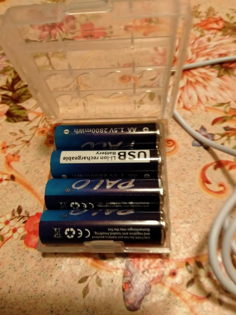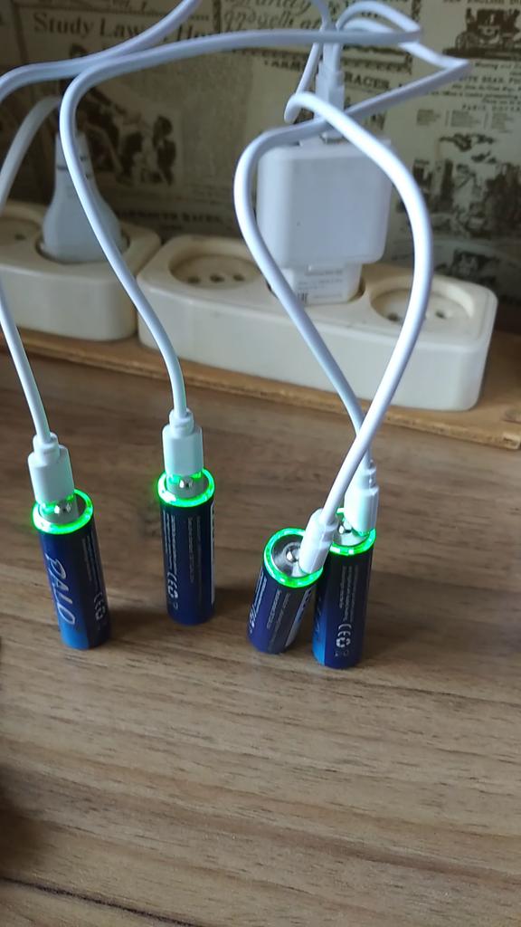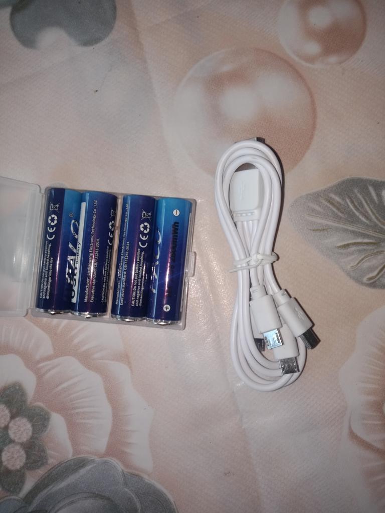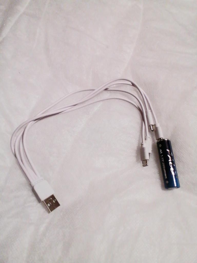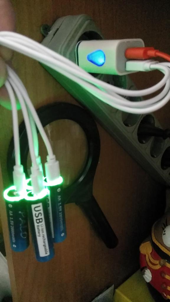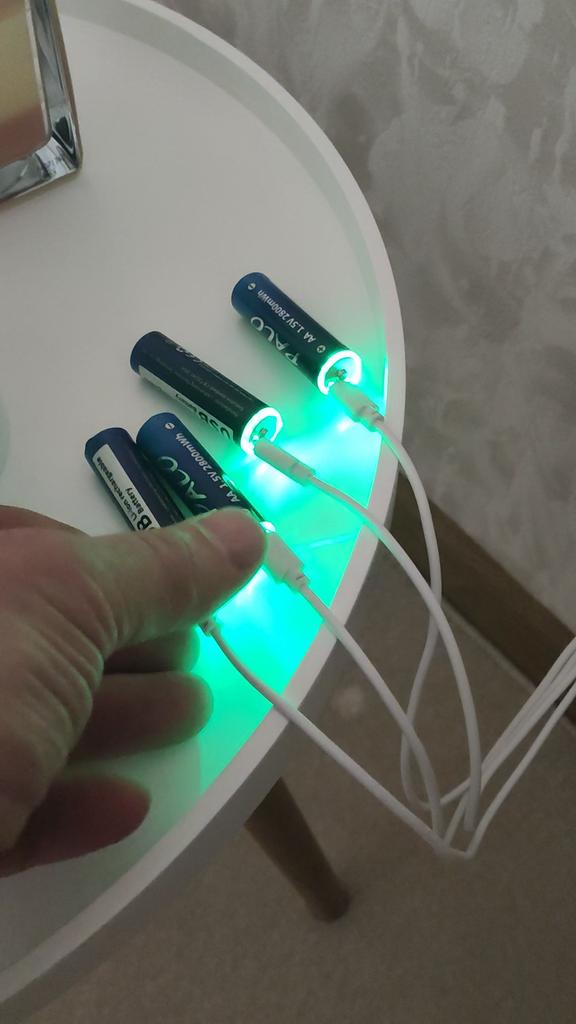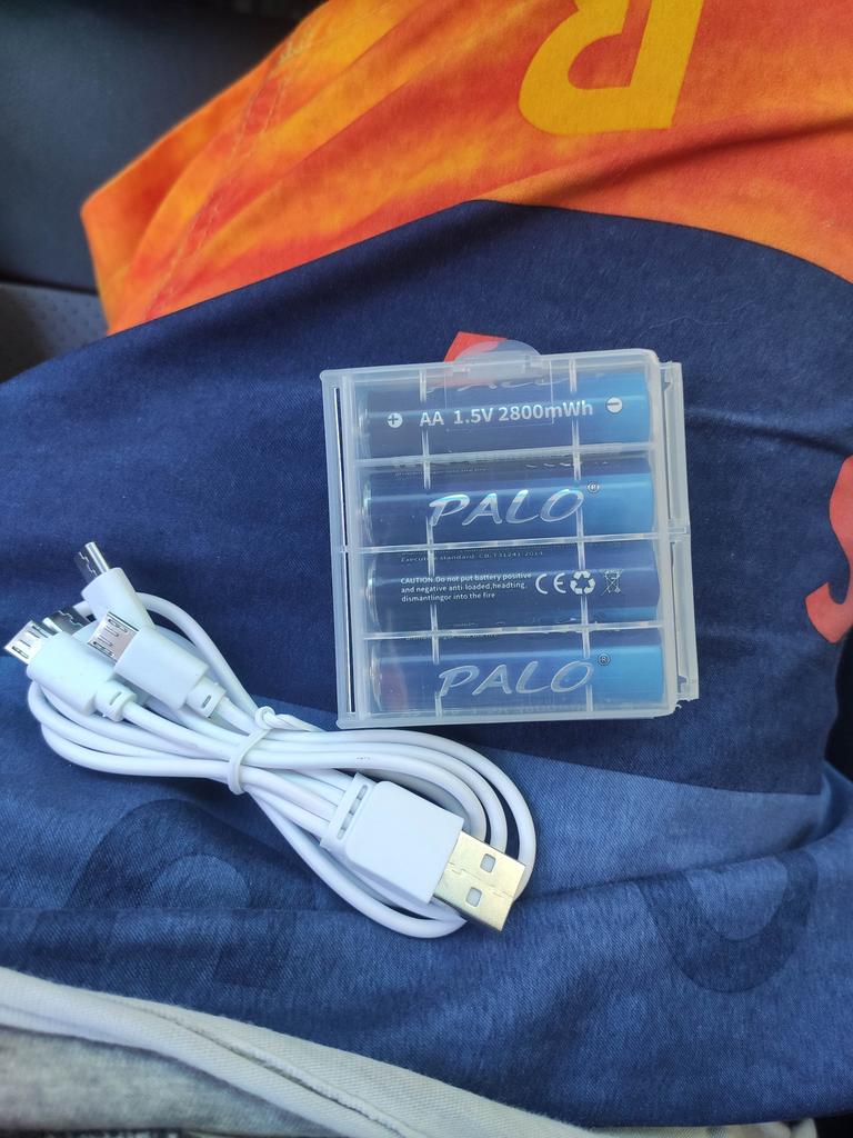 Includes one cord and 4 microusb, to charge all batteries at once. Declared capacity of 2800 mWh. There is no possibility to check. Delivery is surprisingly fast, it did not take 2 weeks. So far so good