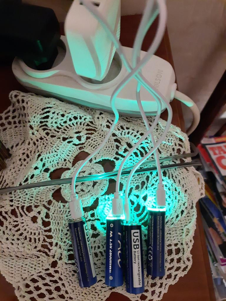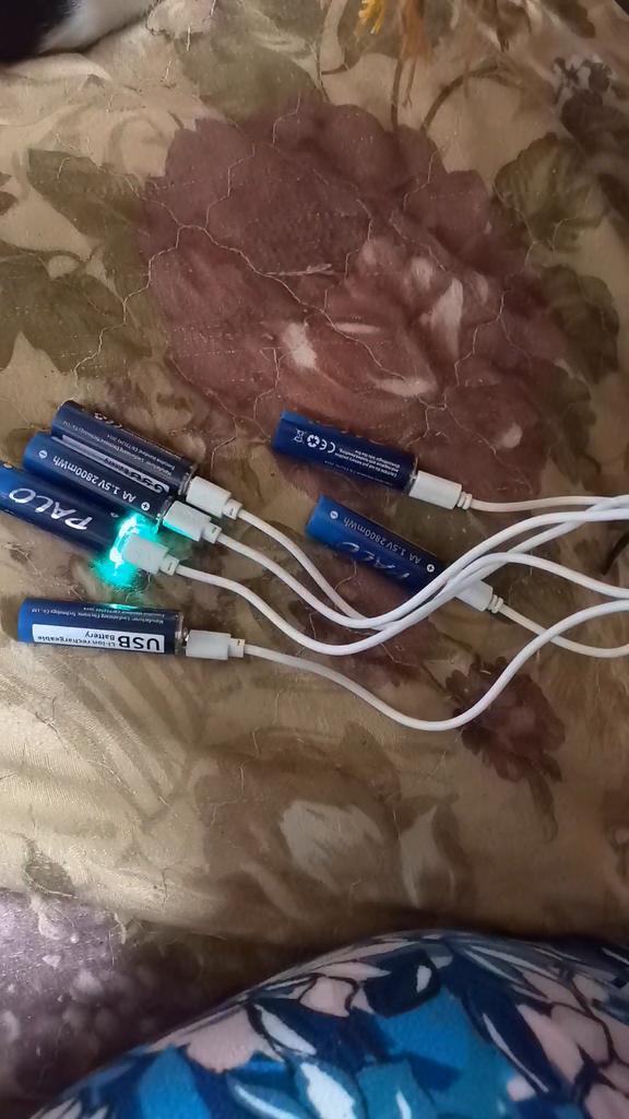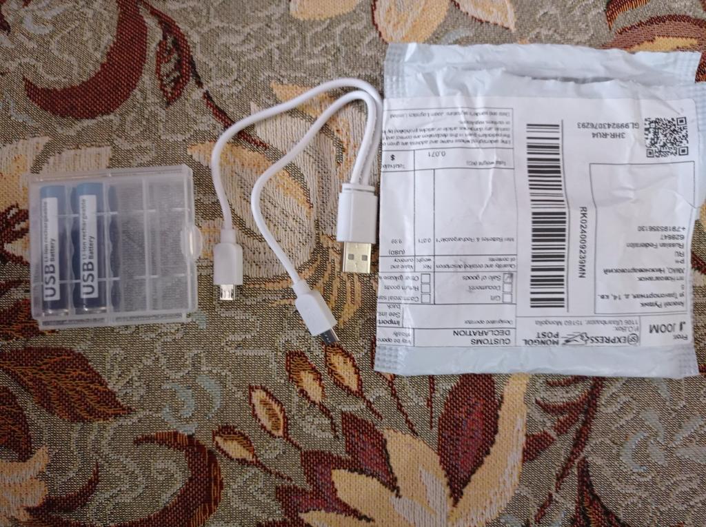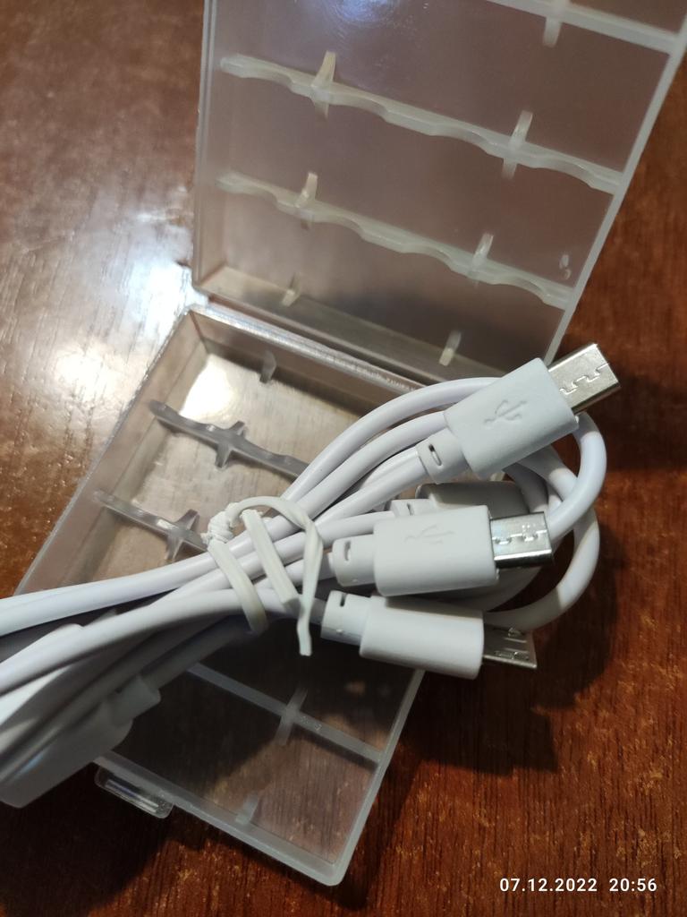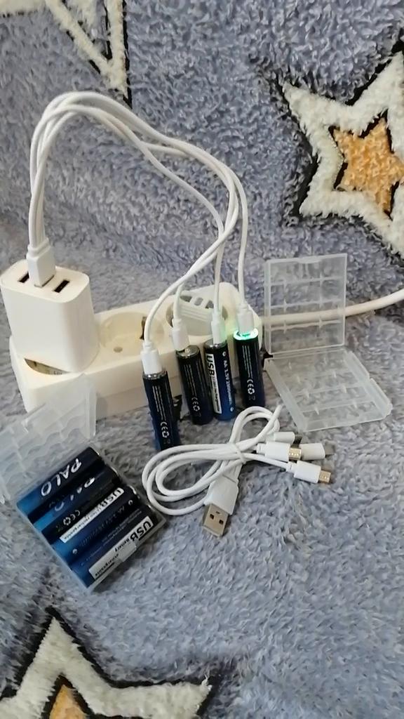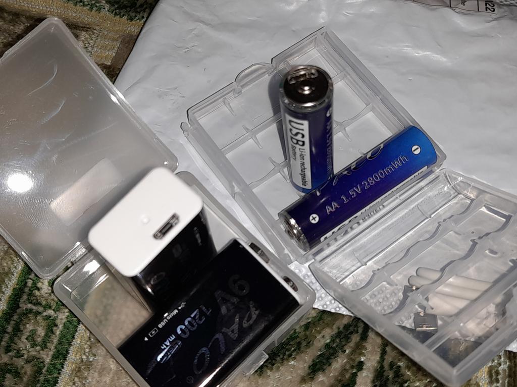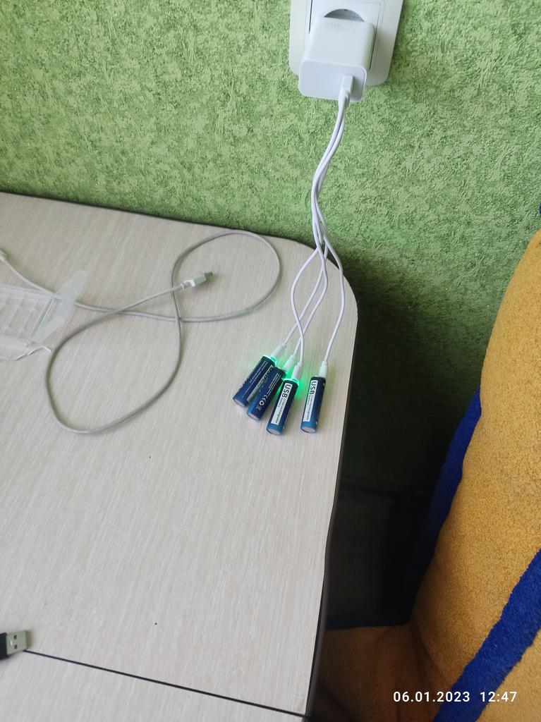 Includes one cord and 4 microusb, to charge all batteries at once. Declared capacity of 2800 mWh. There is no possibility to check. Delivery is surprisingly fast, it did not take 2 weeks. So far so good