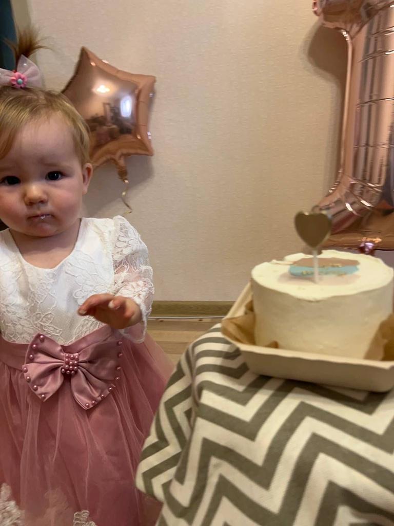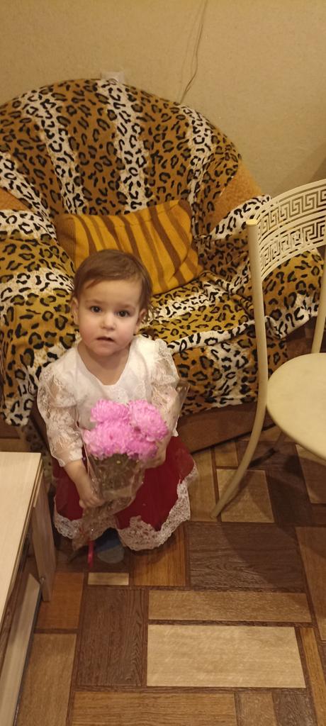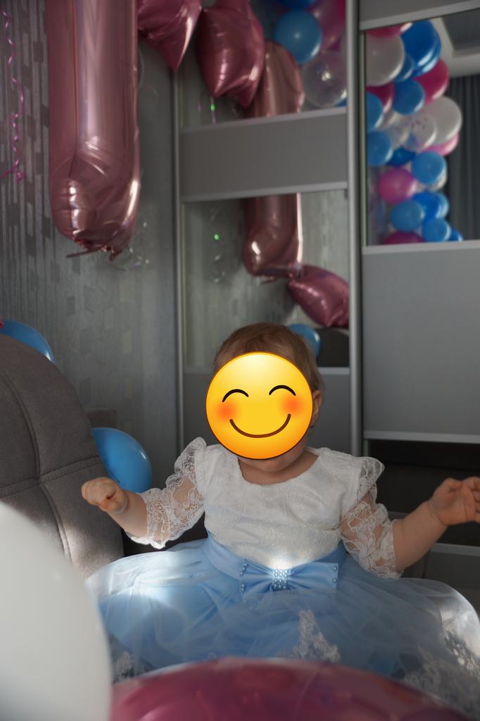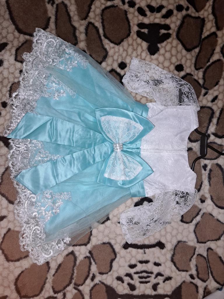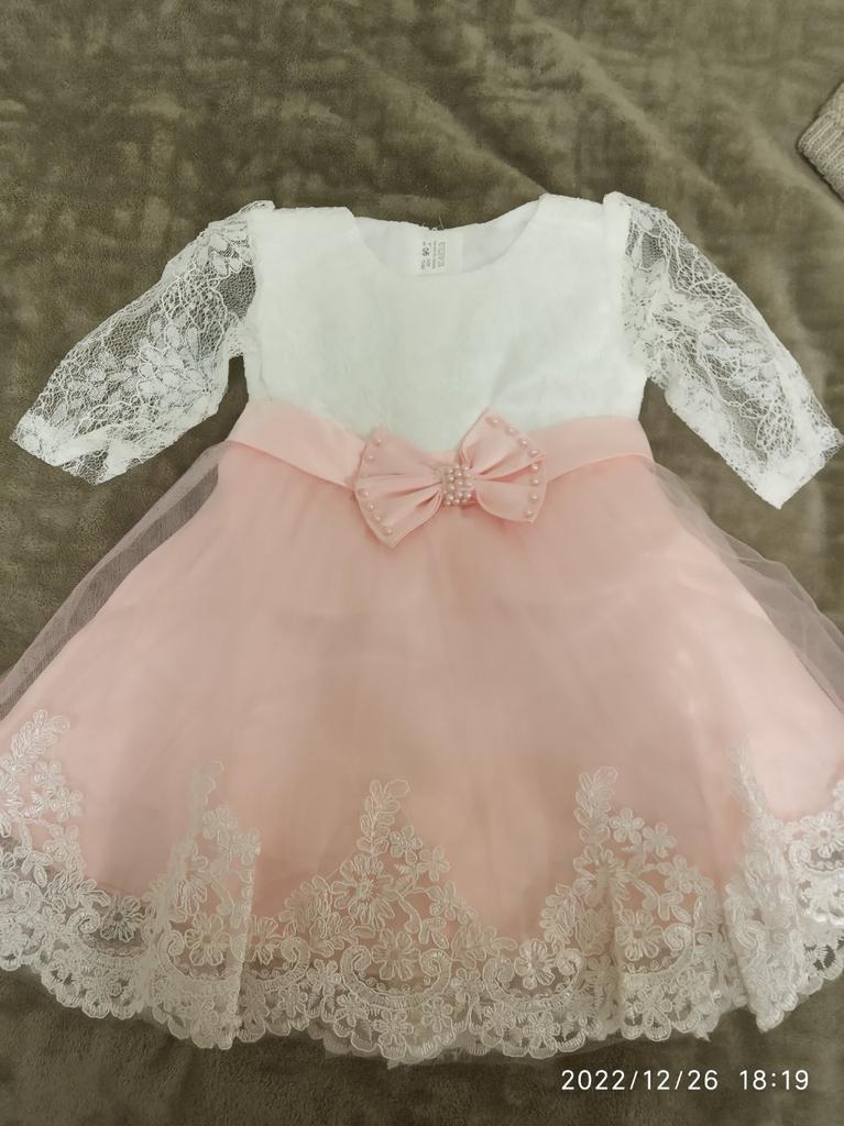 A chic dress, a little big for 9 months, I took it with extra for my birthday, I think it will be just right. The size is correct, the back bow with 2 buttons is attached to the dress. Very satisfied, worth the money. I expected the color to be lighter, but itโs still very beautiful