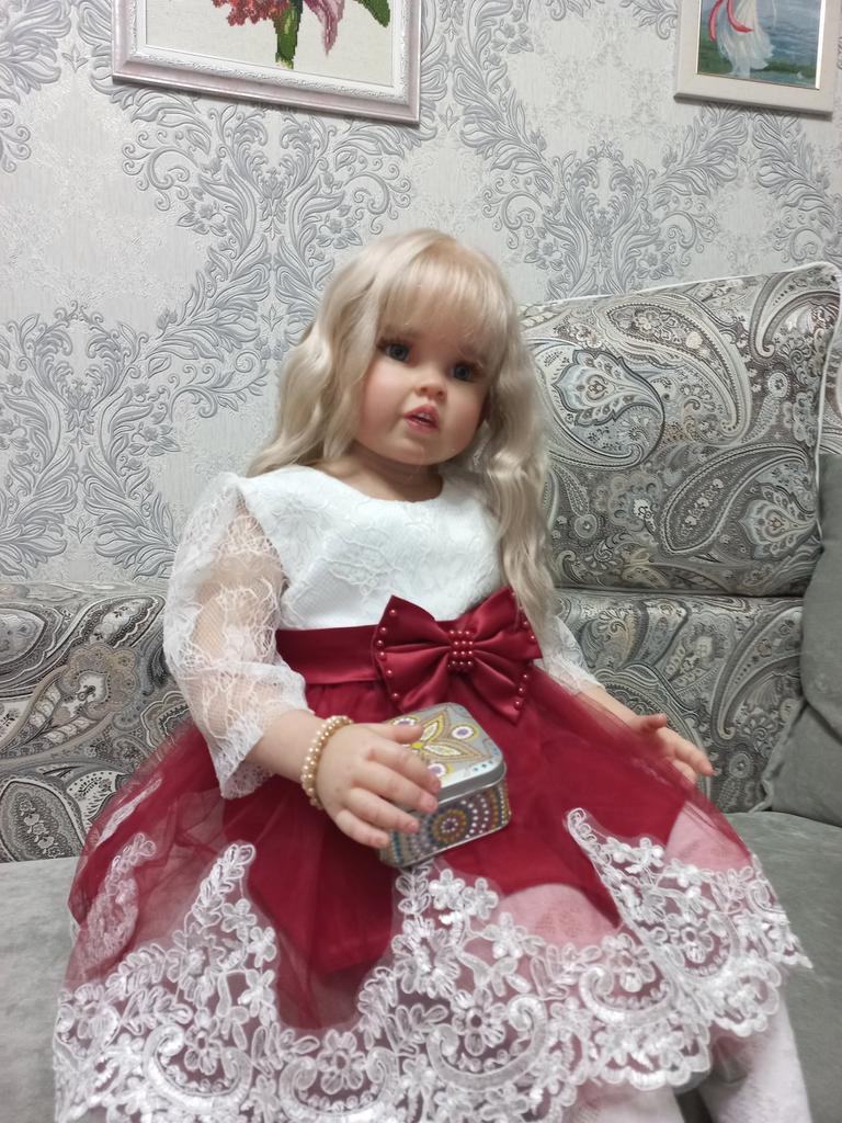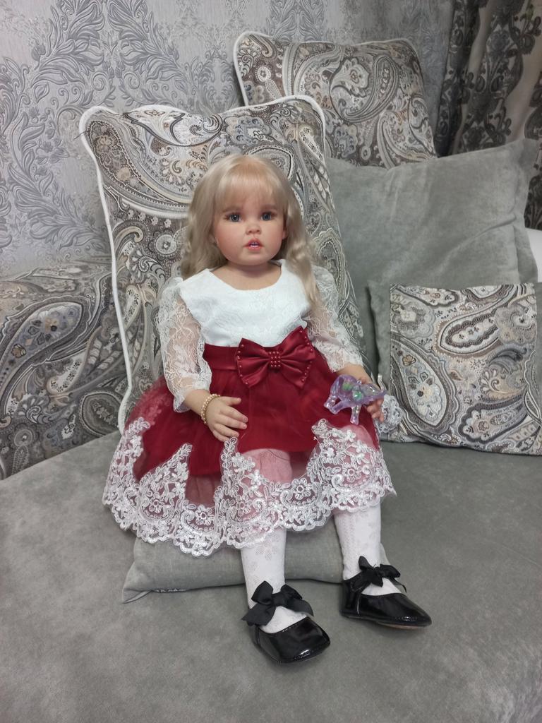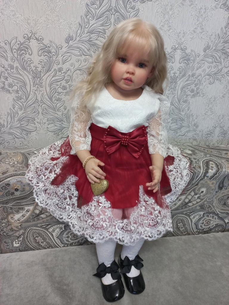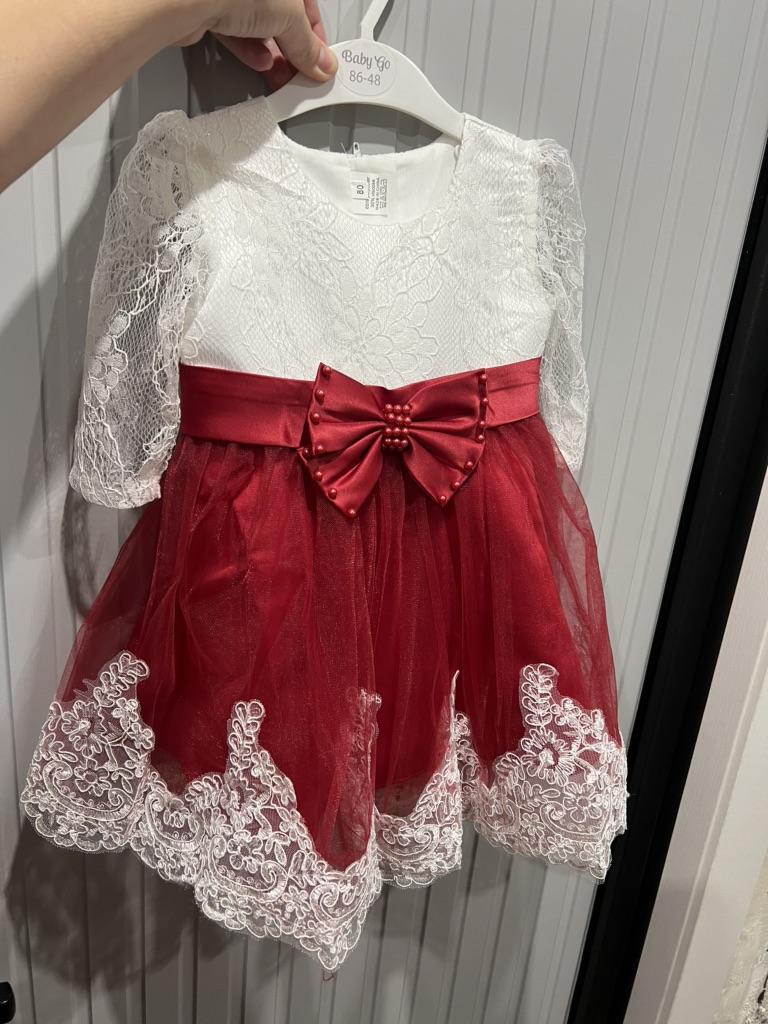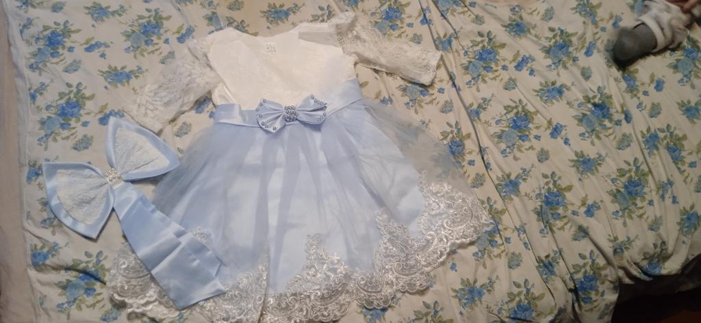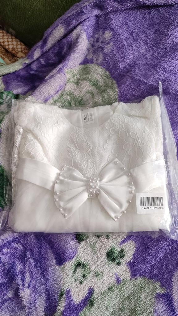 The dress is of excellent quality, but unfortunately a little big for us. Size 80. The bow at the back comes unfastened, which is very convenient.