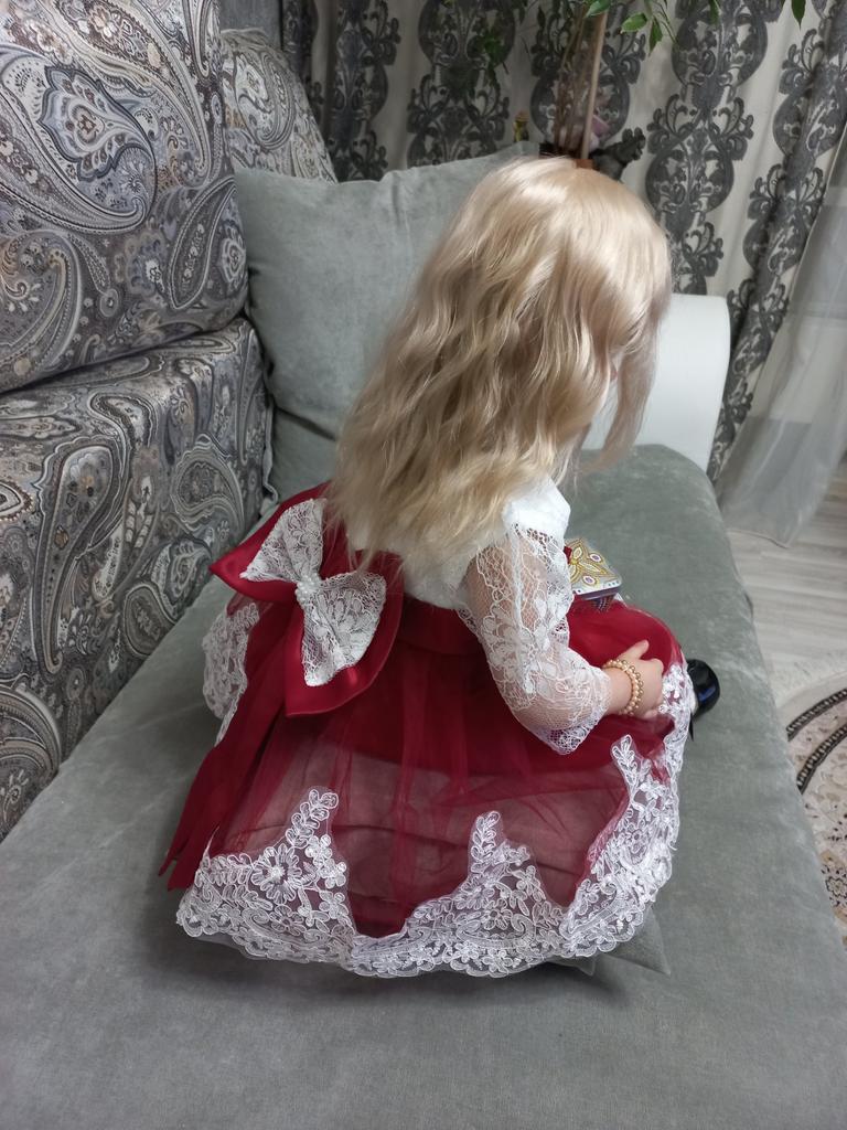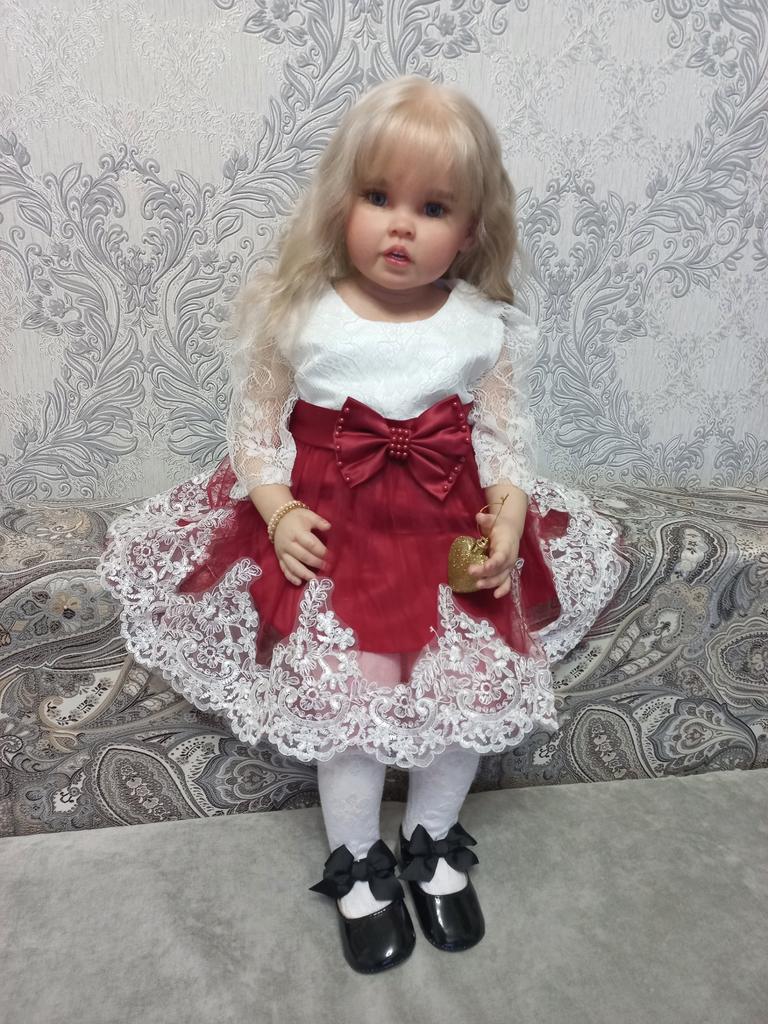 Beautiful dress, soft, pleasant to the touch fabric on top. Thank you! It fits exactly for 10 months.